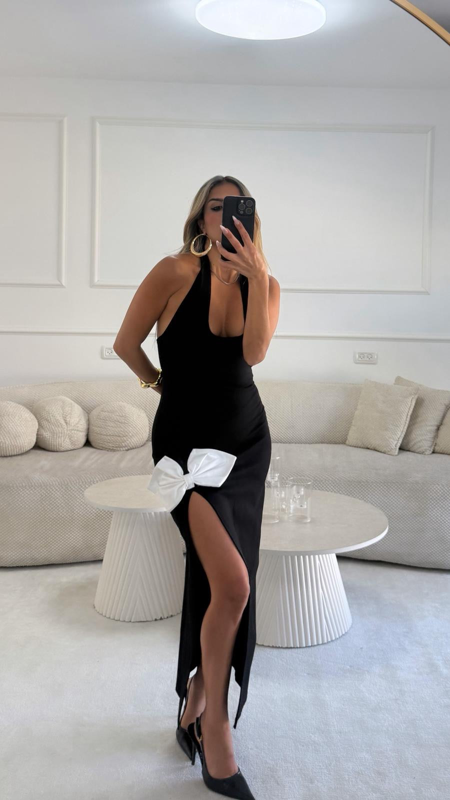 שסע עמוק עם פפיון גדול בצבע מנוגד
