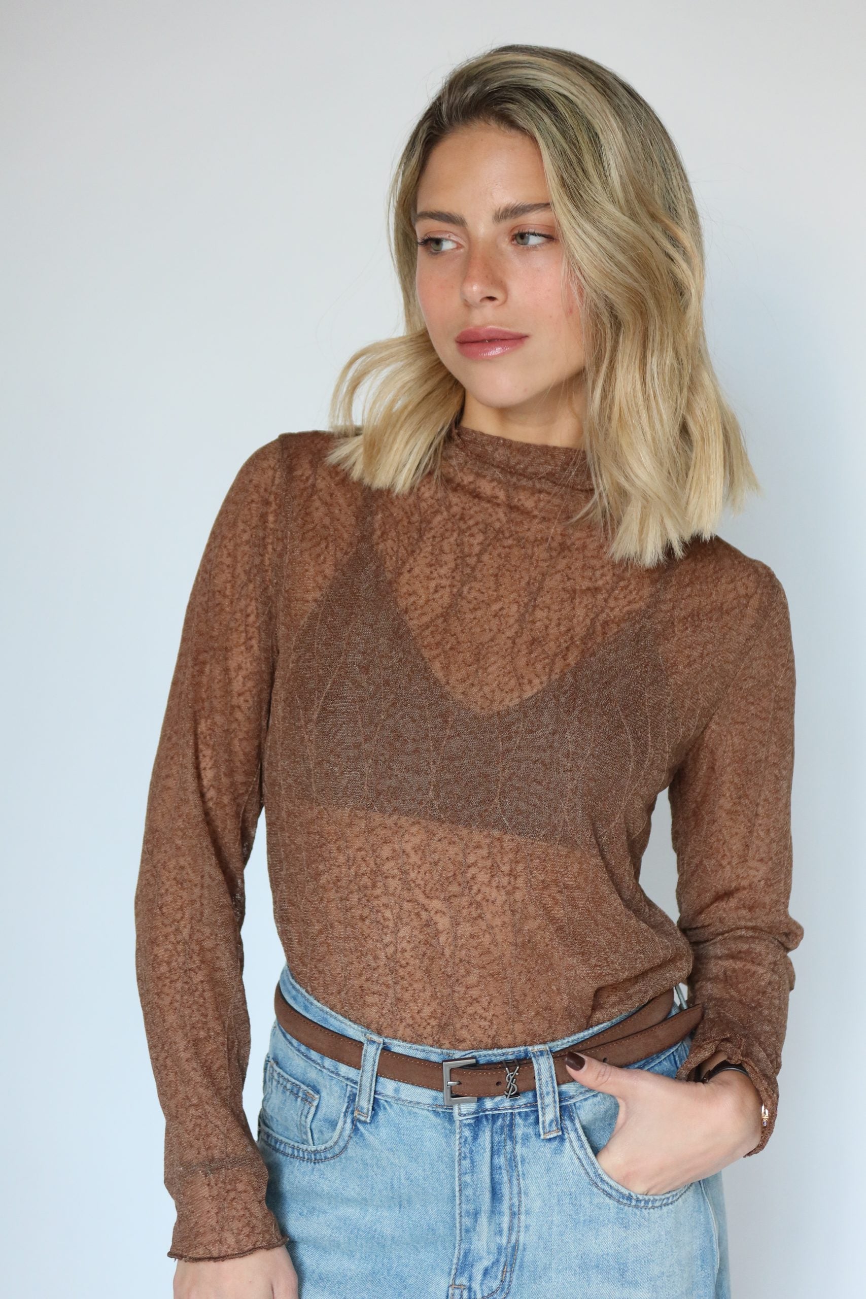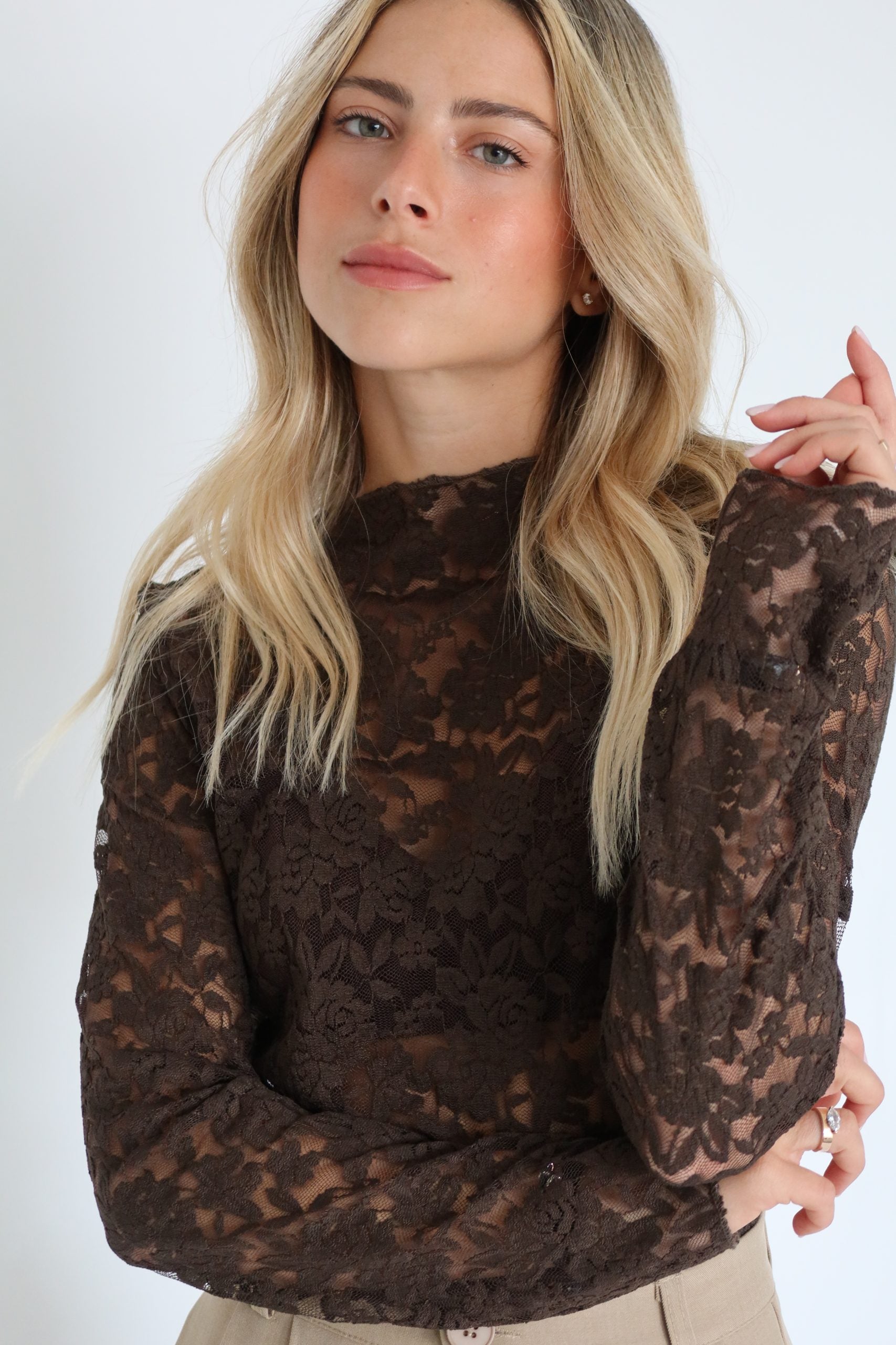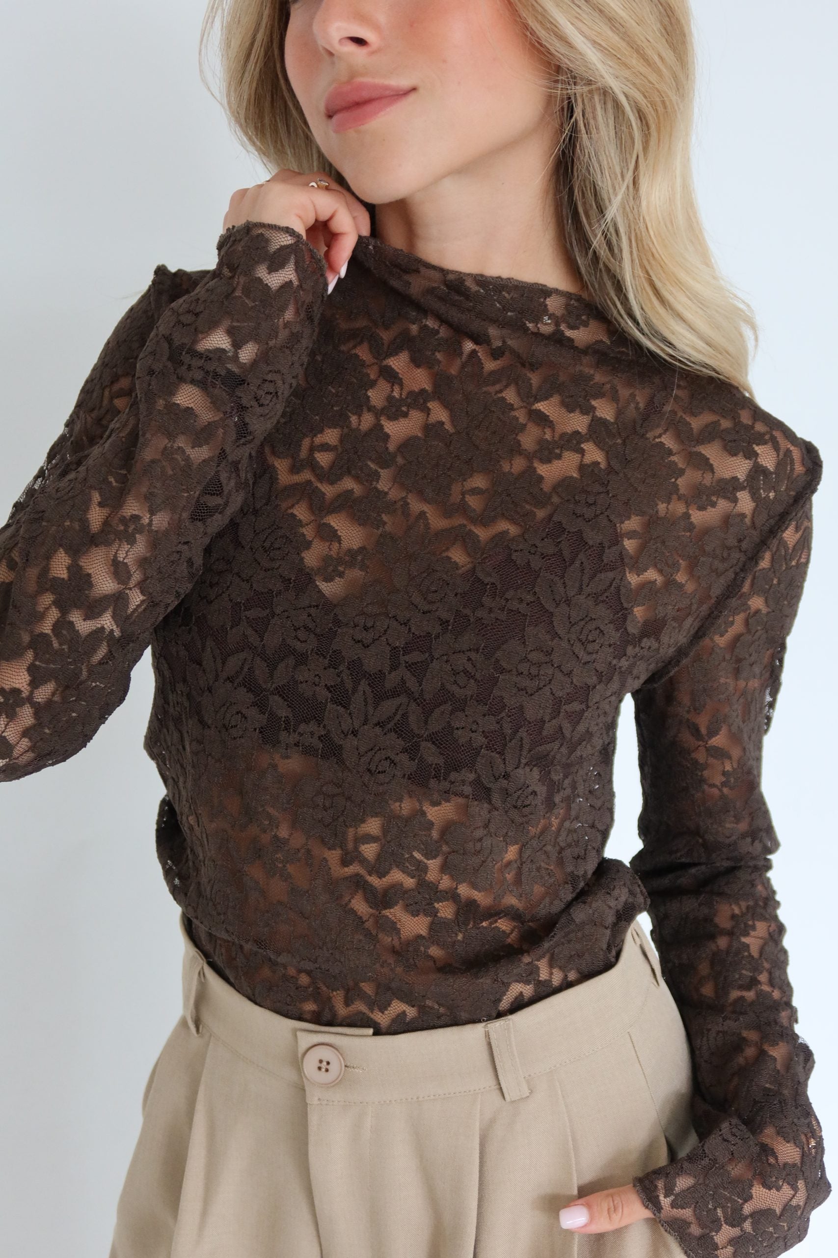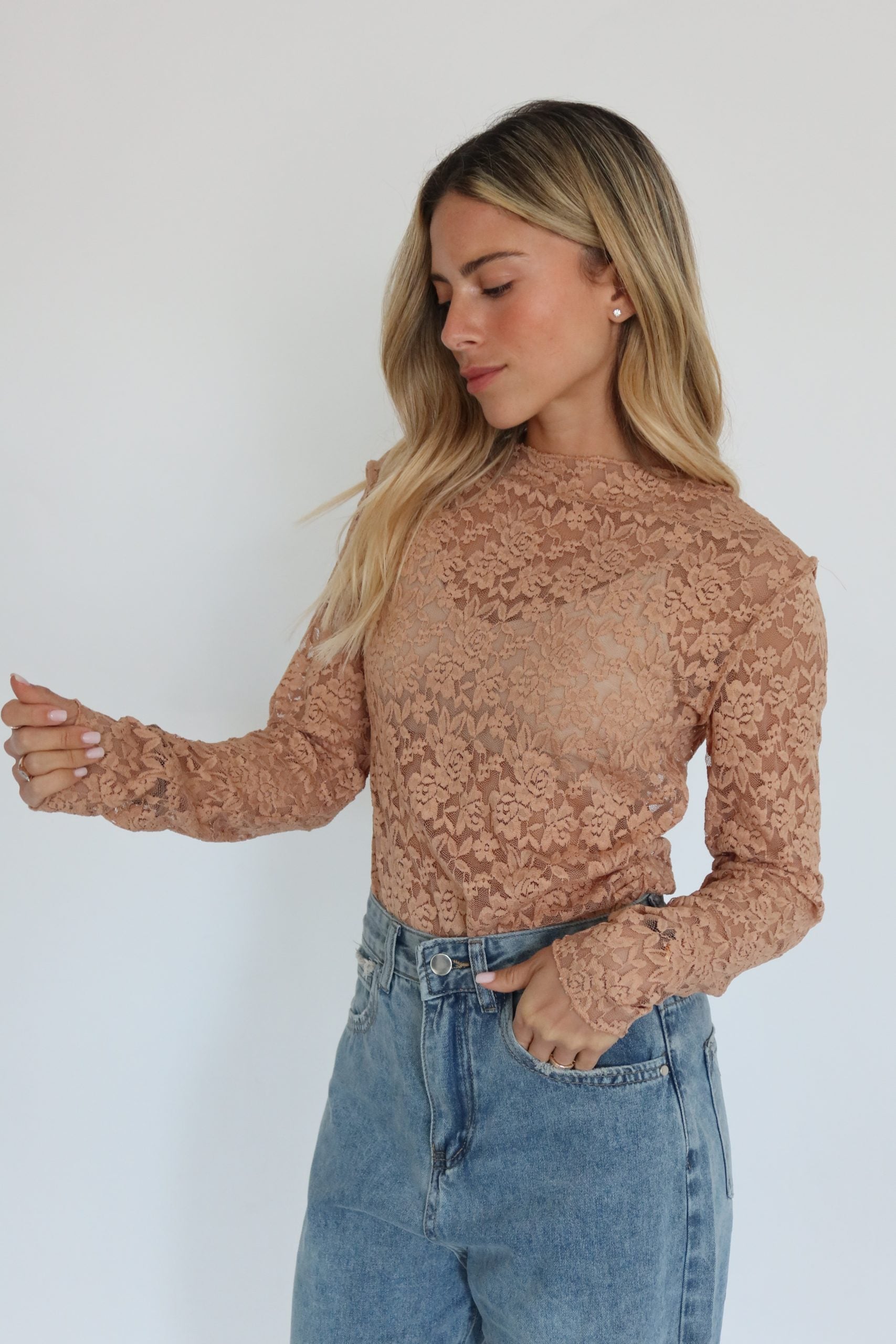 בית כללי חולצת תחרה ארוכה עם כיווצים במותן