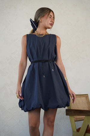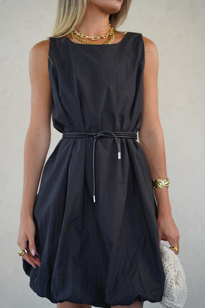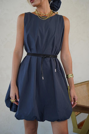 שמלת בלון עם חגורה עור דקה להידוק המותן