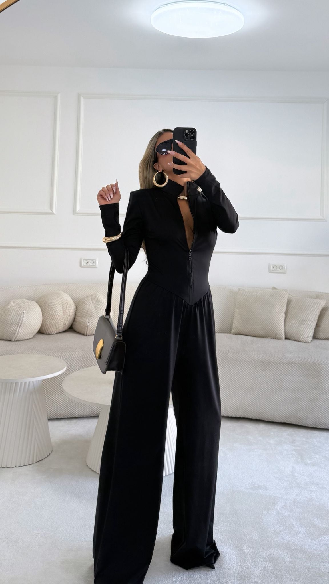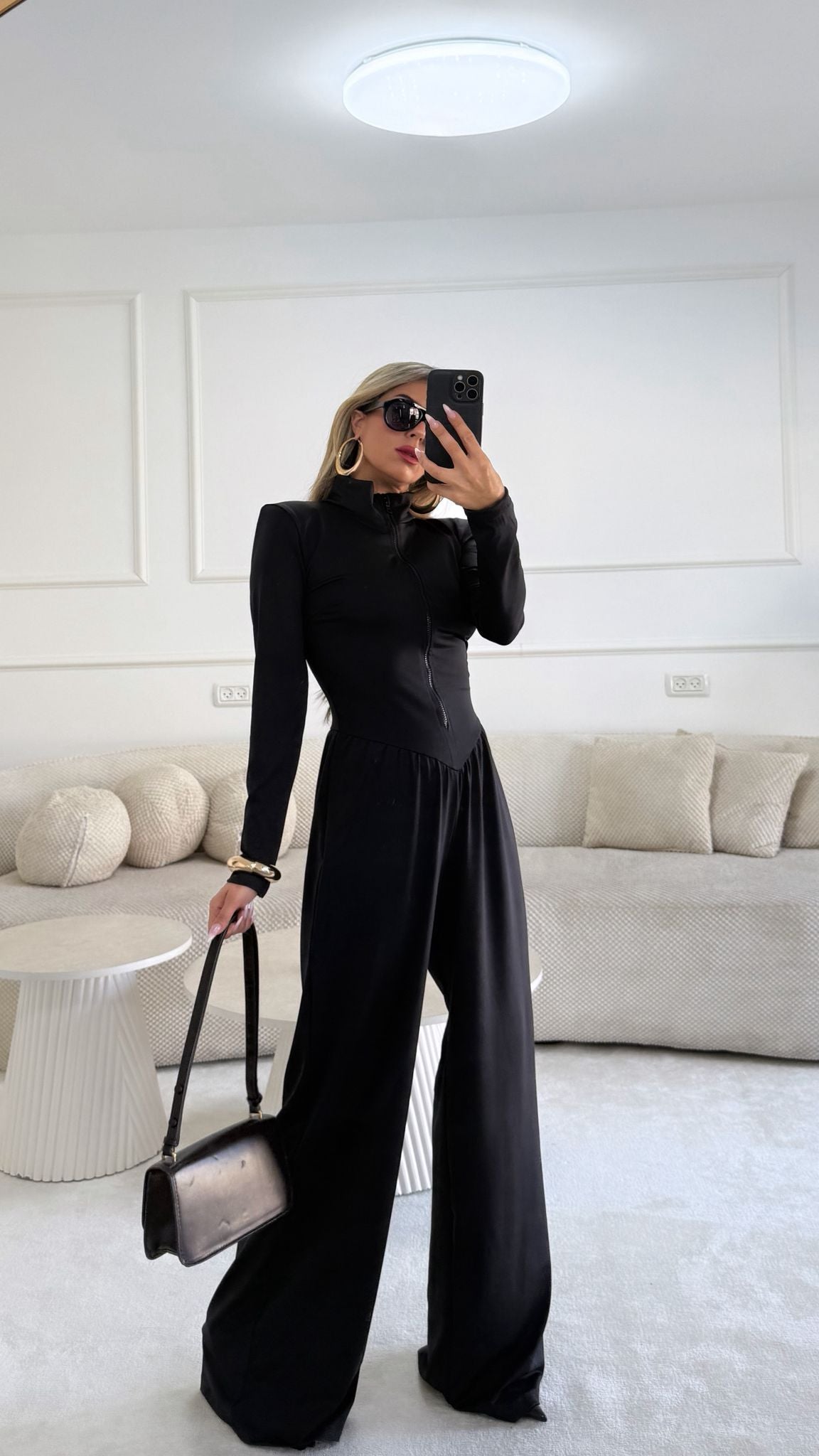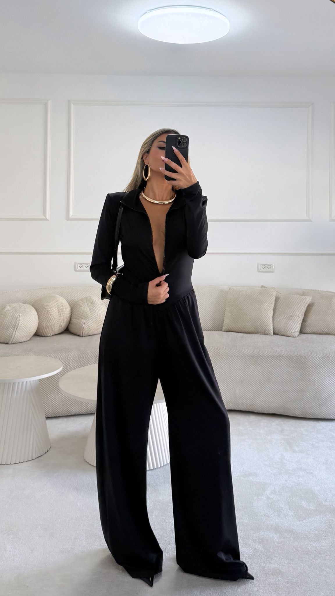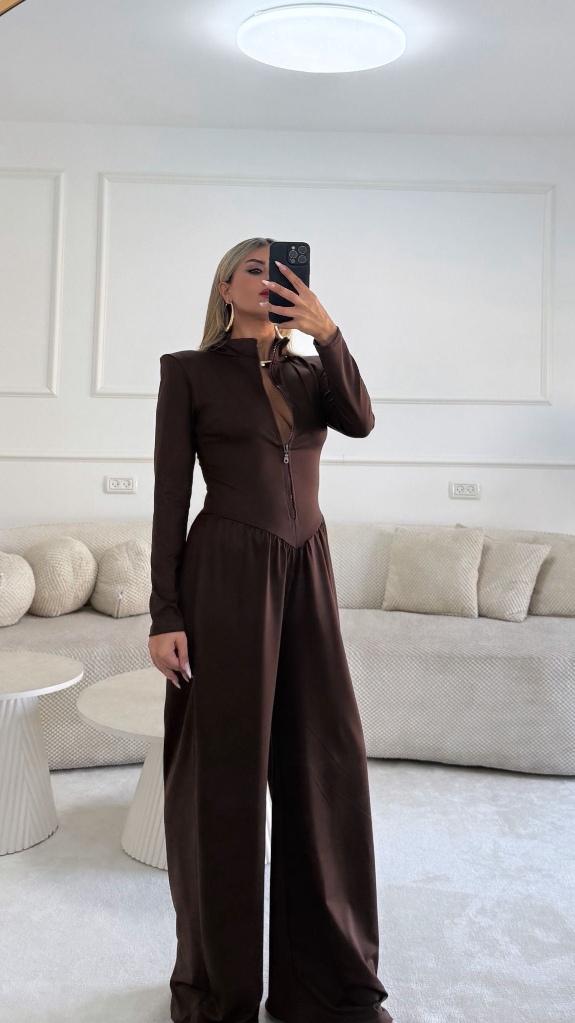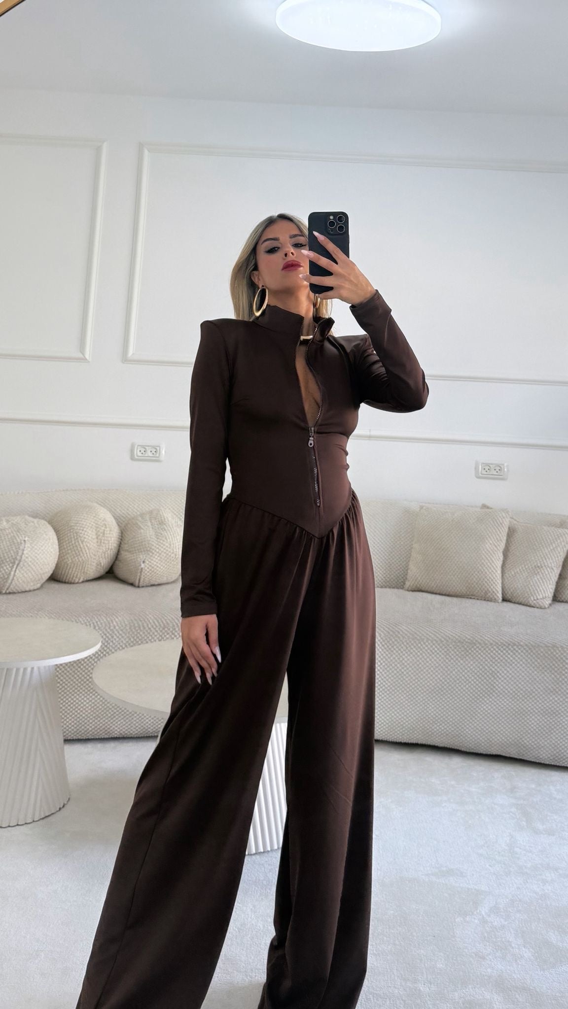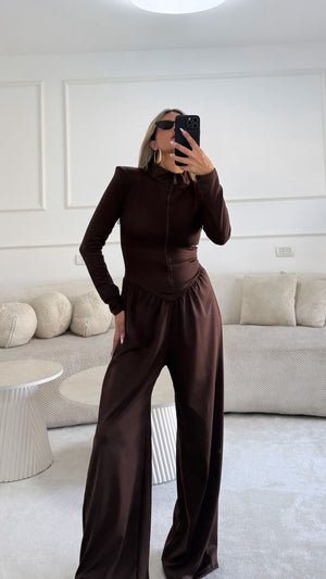 אוברול עם כריות בכתפיים חלק עליון נסגר עם רוכסן