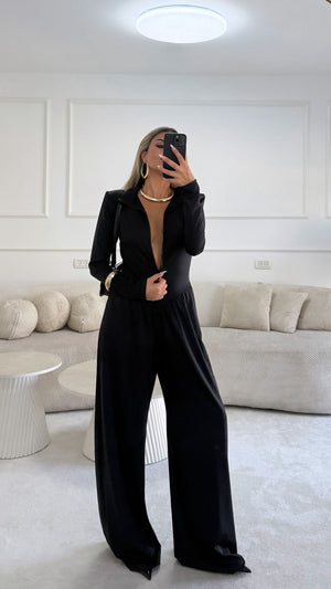 אוברול מחמיא מבד לייקרה מבריק נמתח