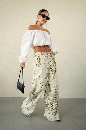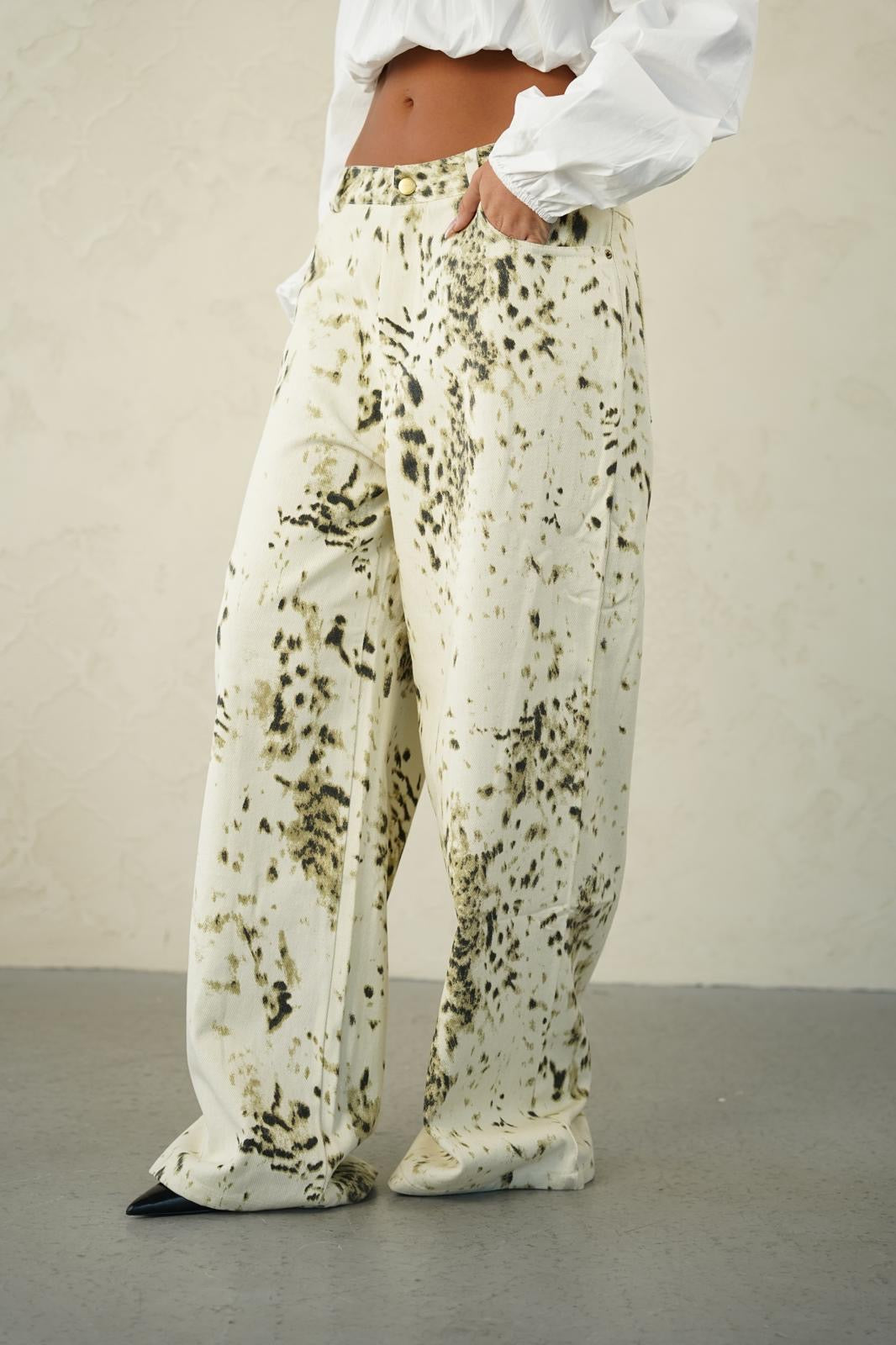 ג׳ינס מנומר לבן בגזרה אוברסייז