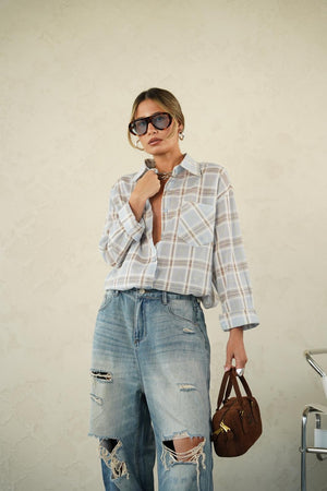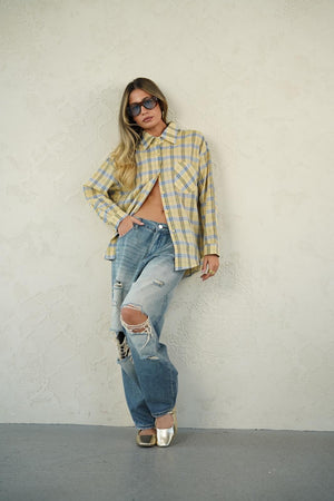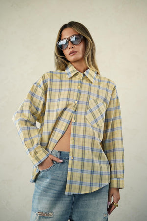 החולצה קיימת במשובץ צהוב, משובץ תכלת, ומשובץ ירוק