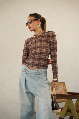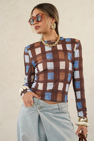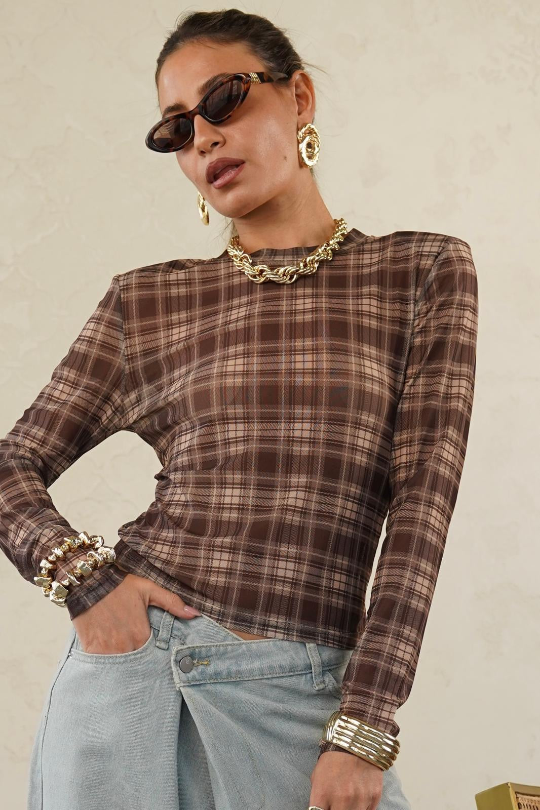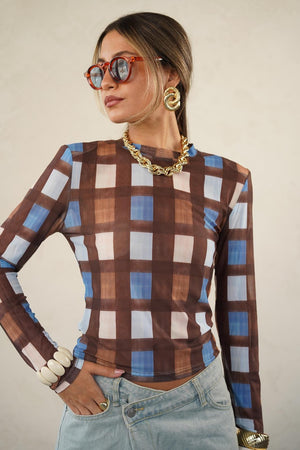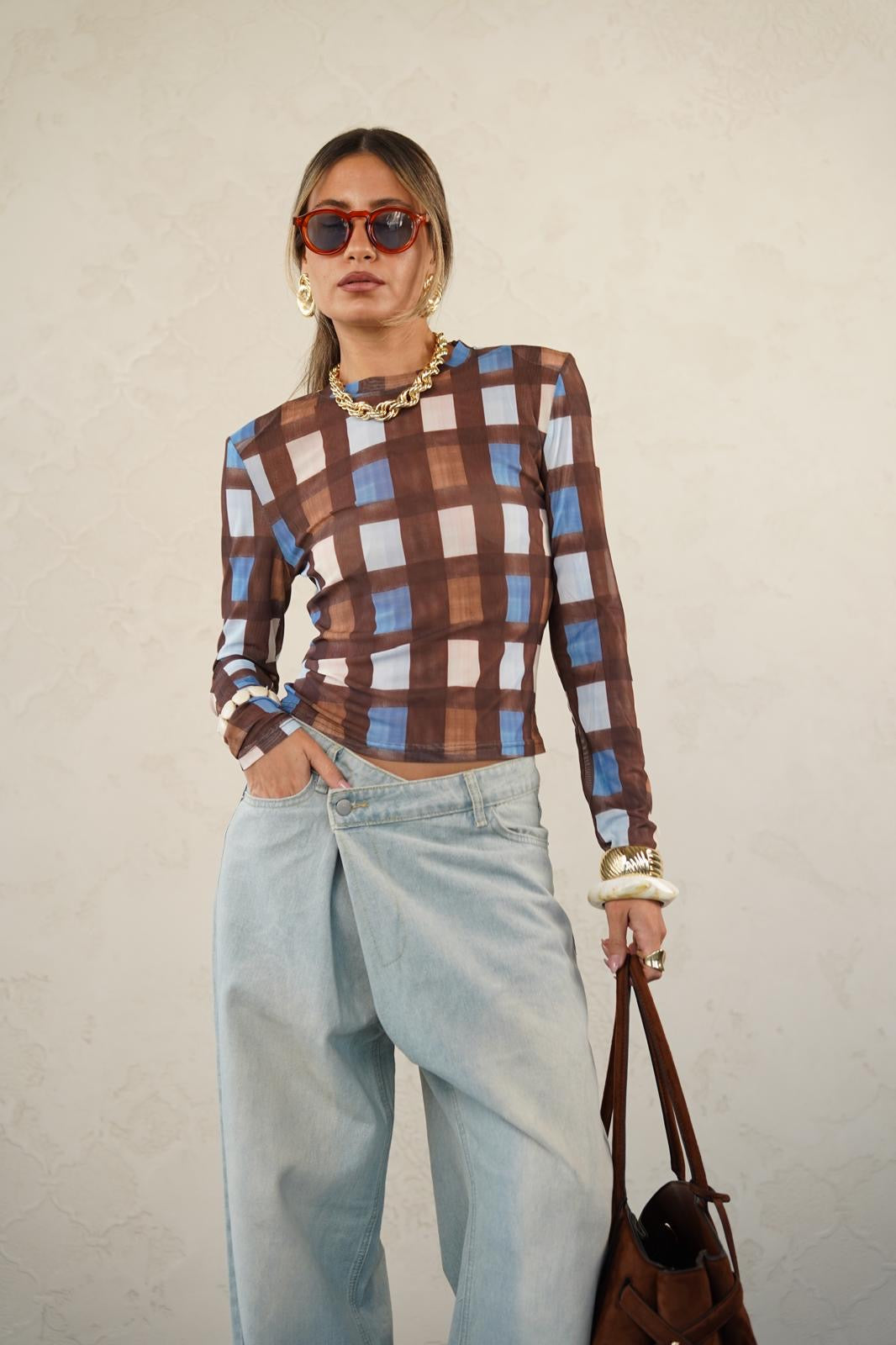 חולצה שקפקפה עם הדפס ריבועים בשילוב