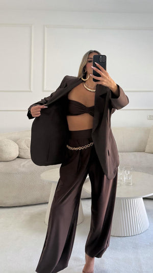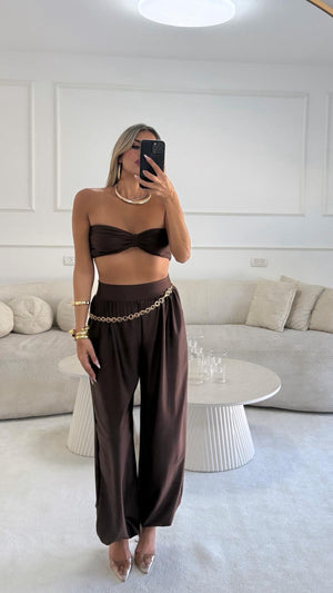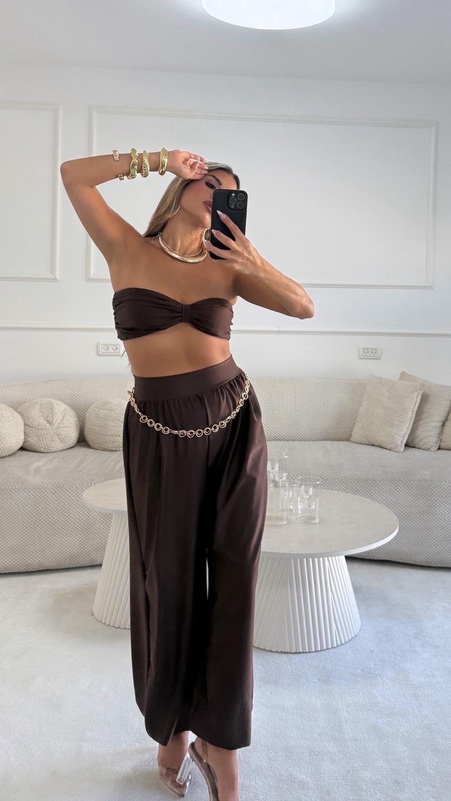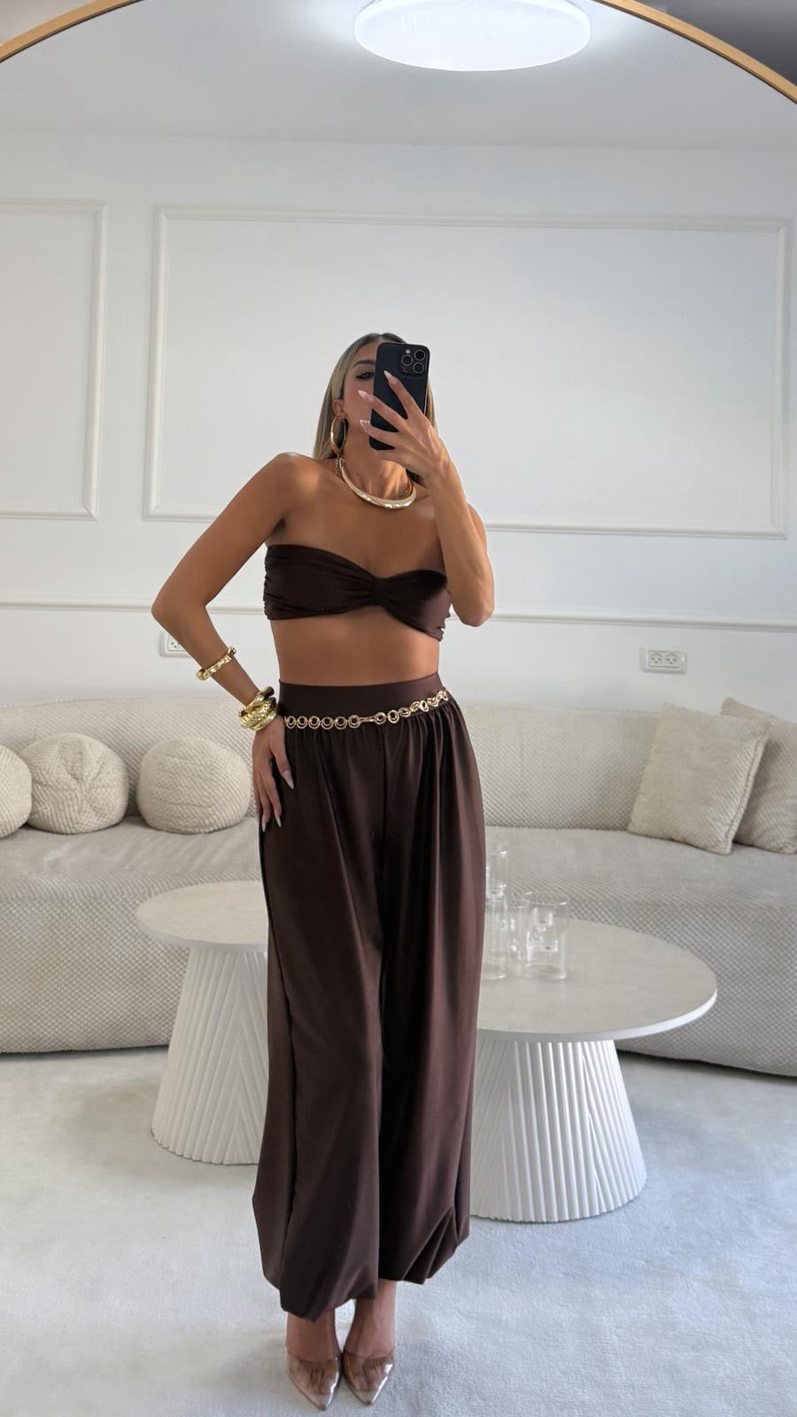 ומכנסיי לוז נשפכים בגזרת בלון עם גומי בסוף הרגל
