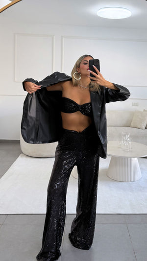 מכנסיים רחבים עם וי בבטן בגזרת קלוש נשפך עם בטנה פנימי (עד חצי רגל)
