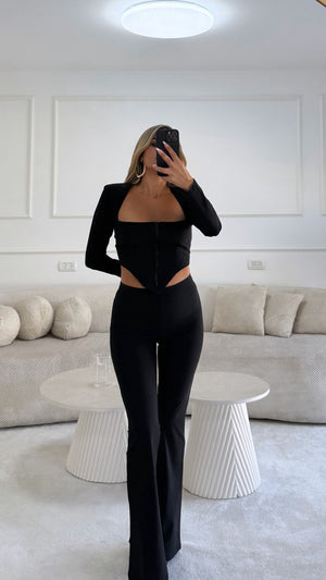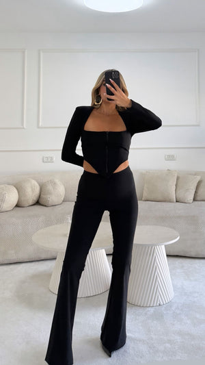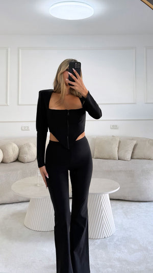 טופ מחוך עם שרוולים ארוכים, סגירת רוכסן מקדימה
