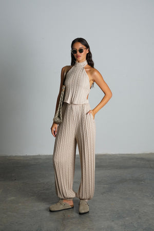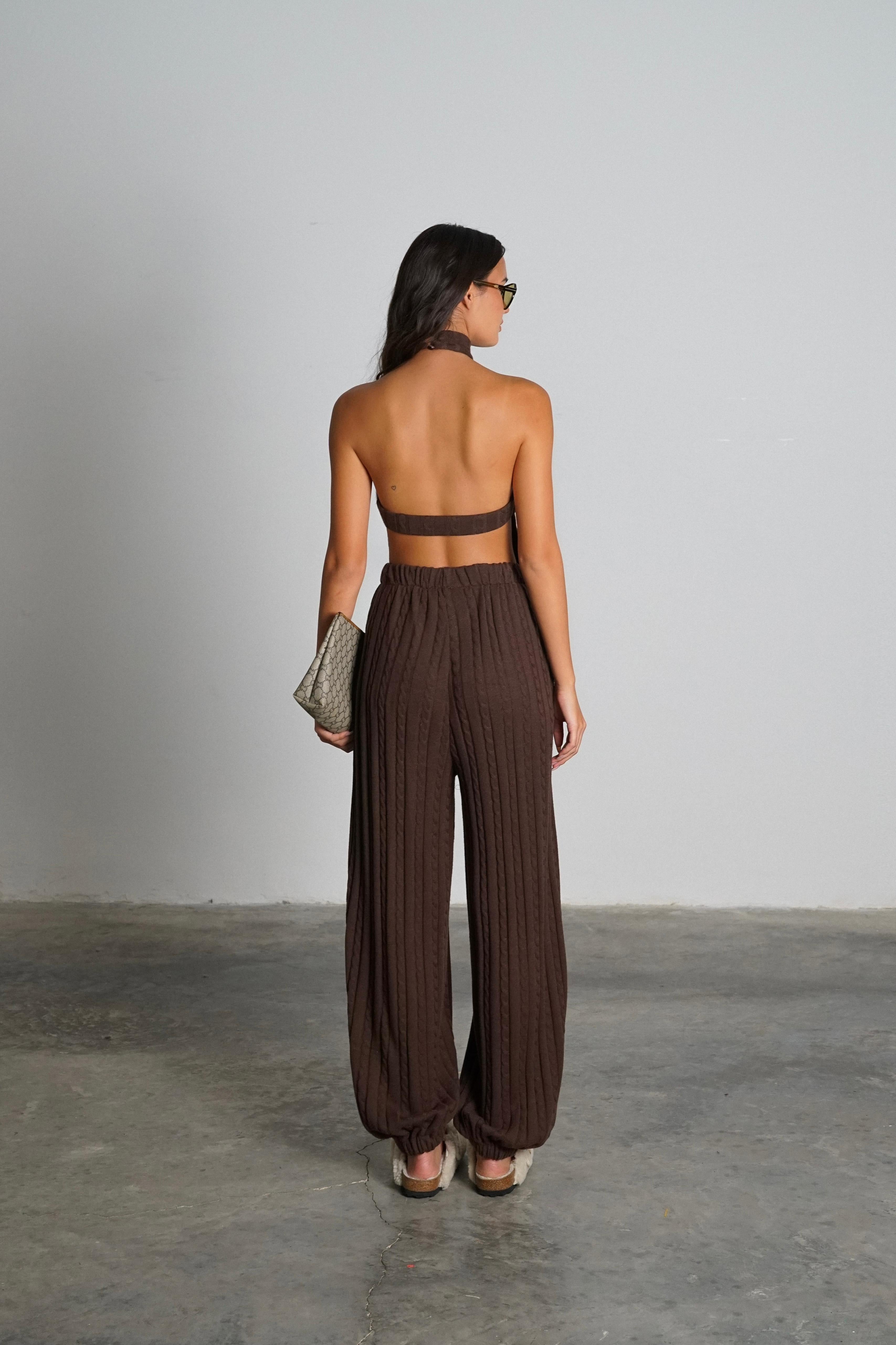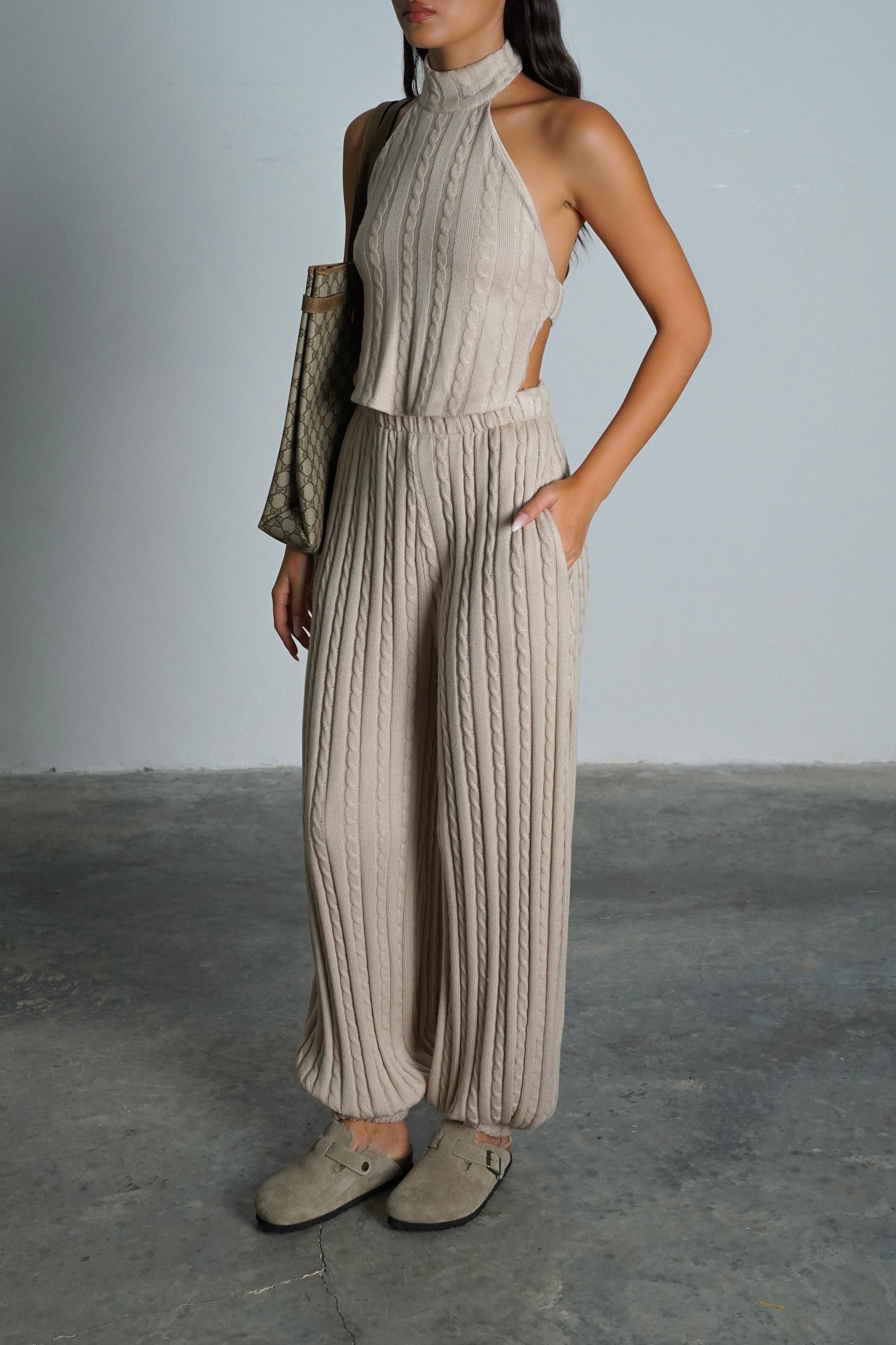 מכנסי סריג רחבים עם גומי בקרסוליים למראה רך ונינוח.