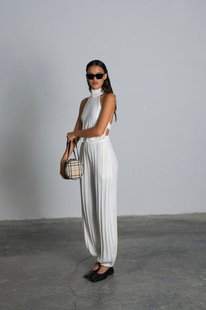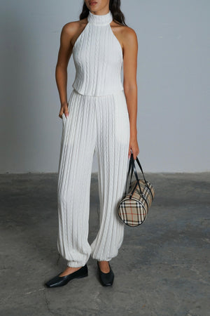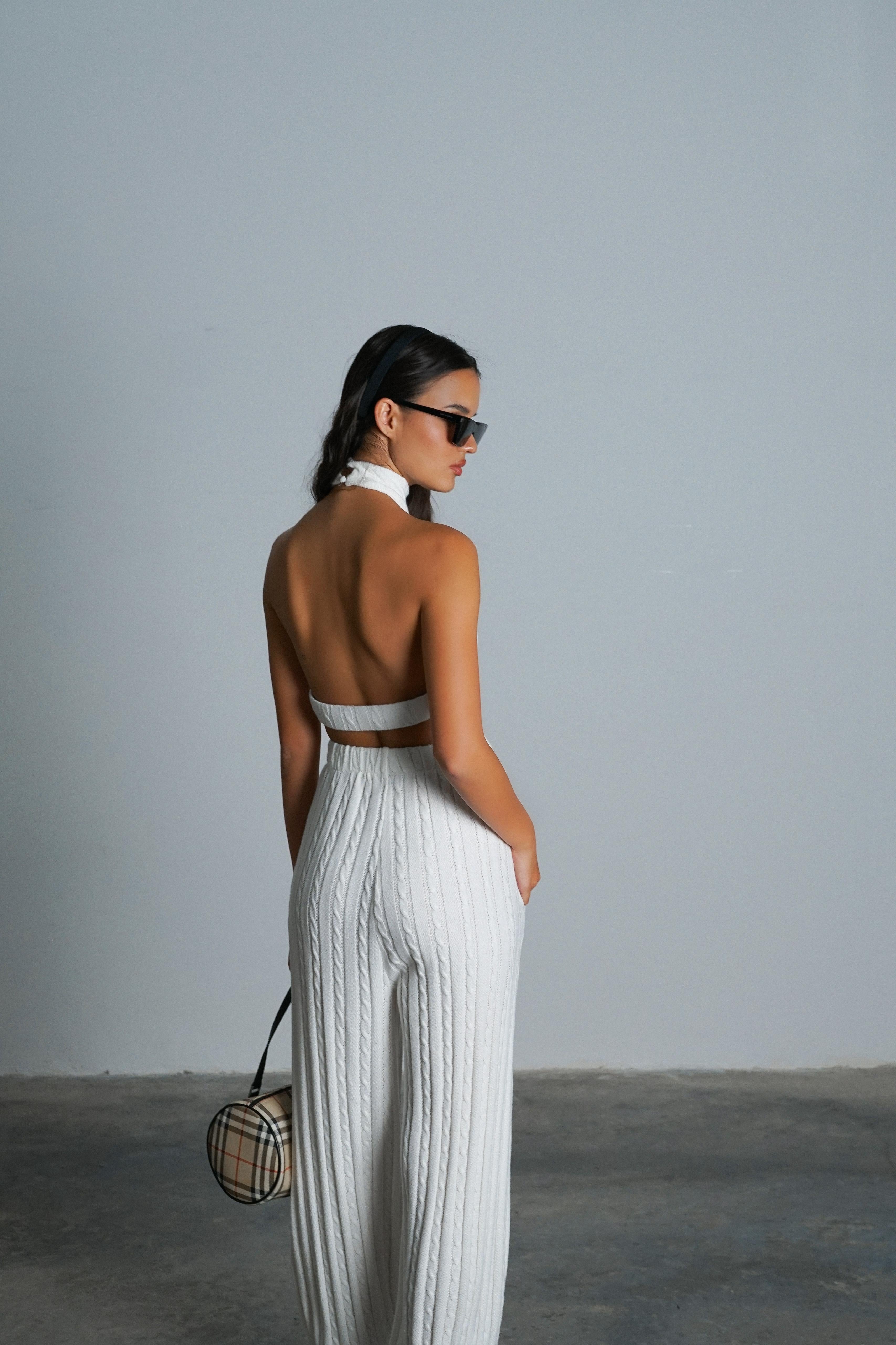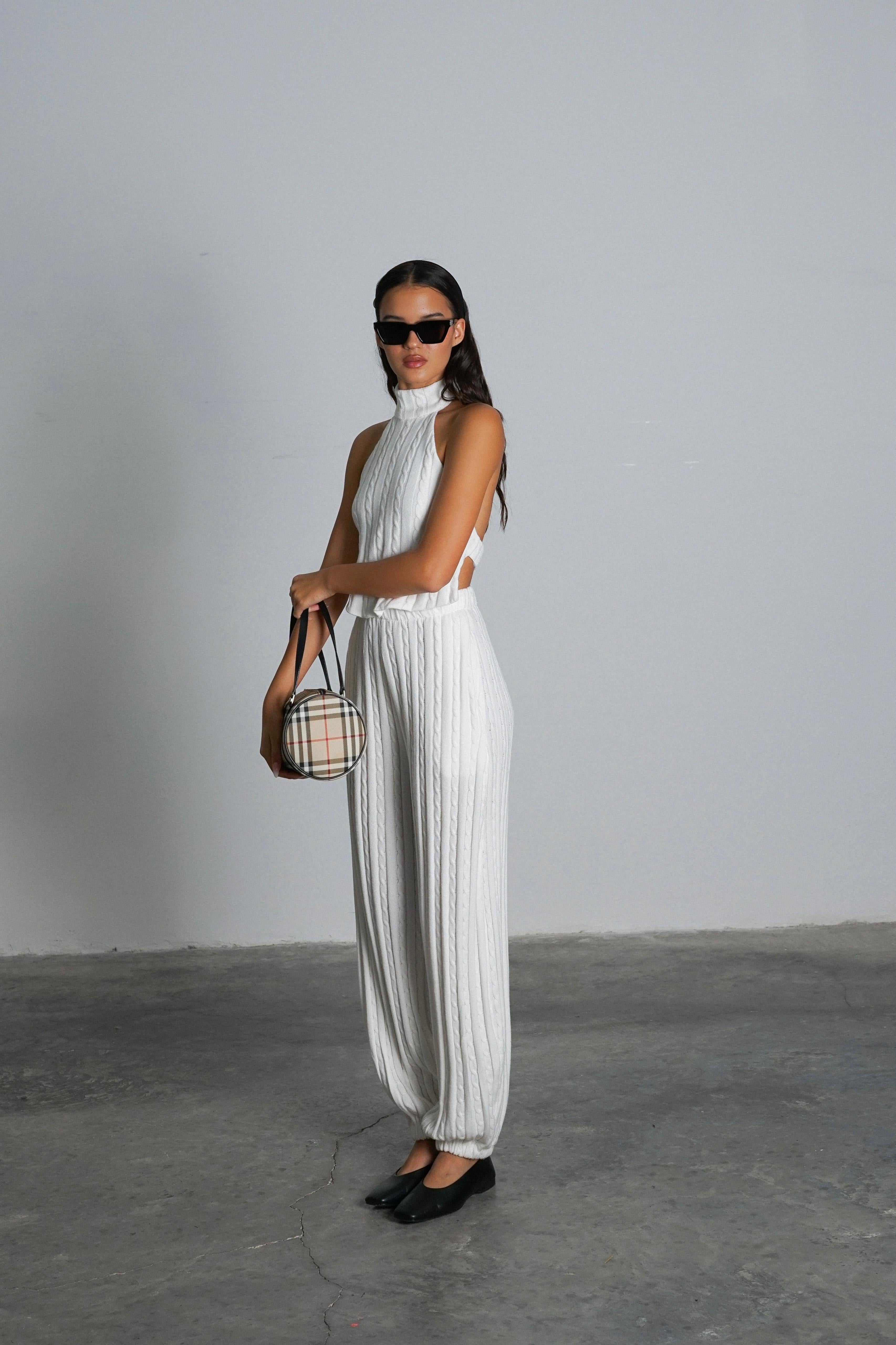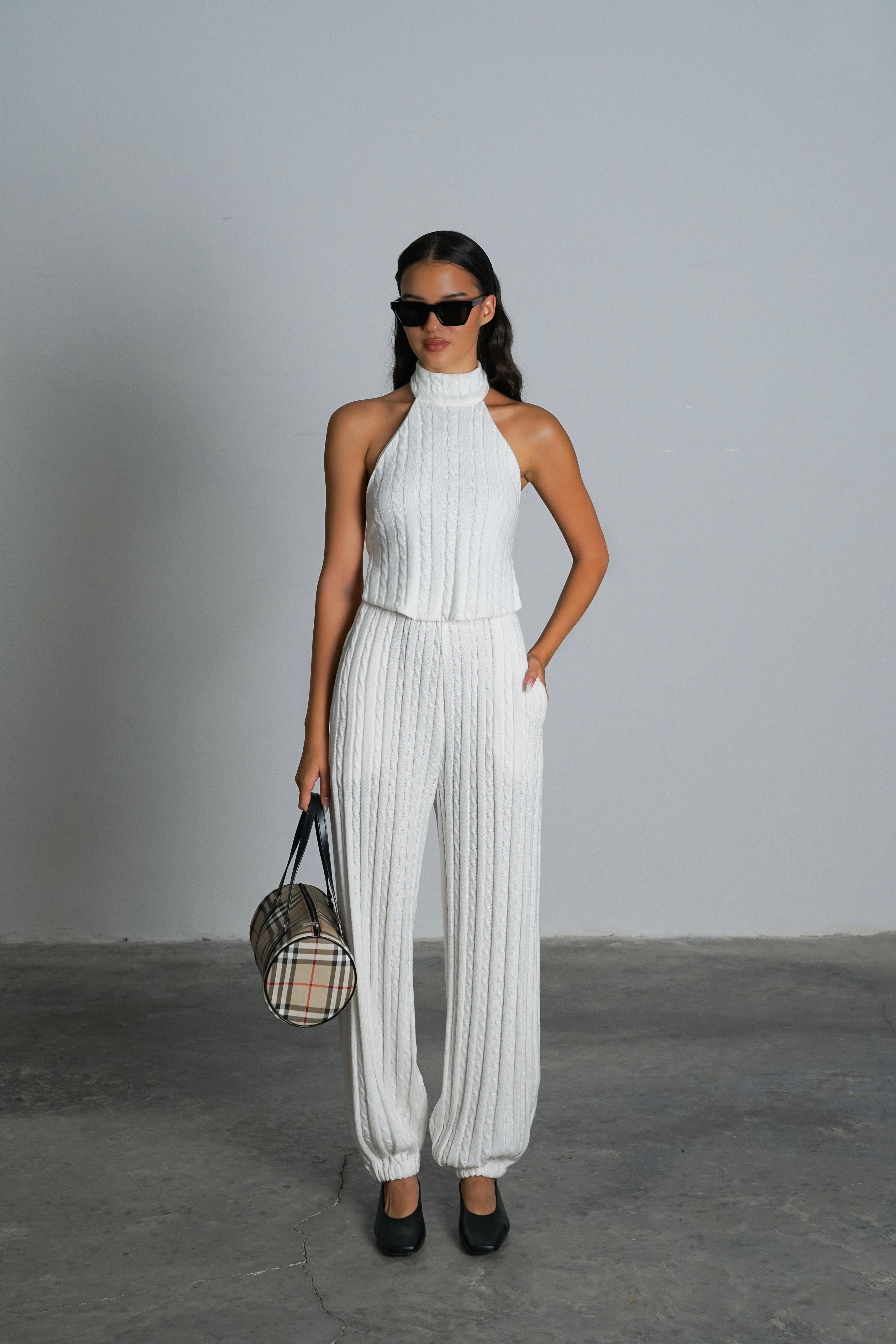 חליפת סריג לבנה מהממת ומחמיאה, המשלבת בין נוחות לסטייל נקי ואלגנטי.