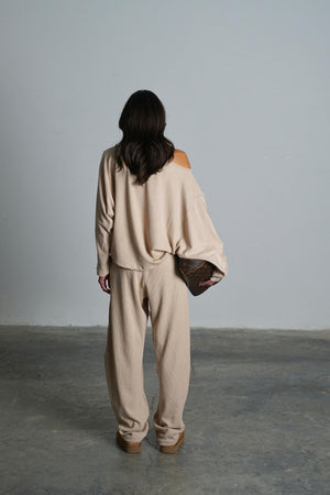 הבד הסרוג בעל טקסטורת צמות עדינה שמוסיפה יוקרה ואלגנטיות. מושלם ללוק חורפי שיקי – בבית, בבילוי או ביום עבודה נינוח