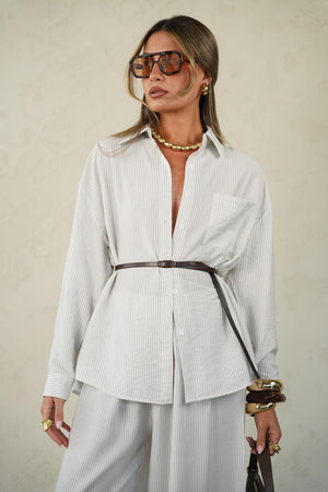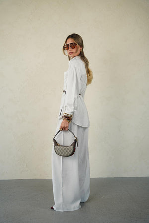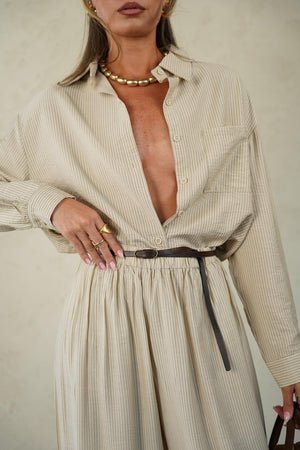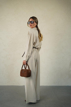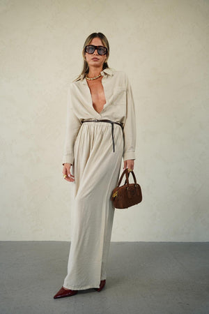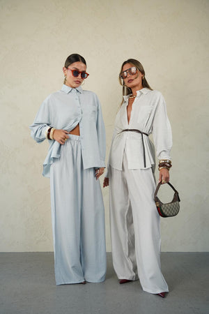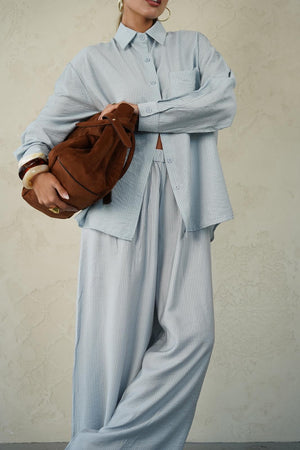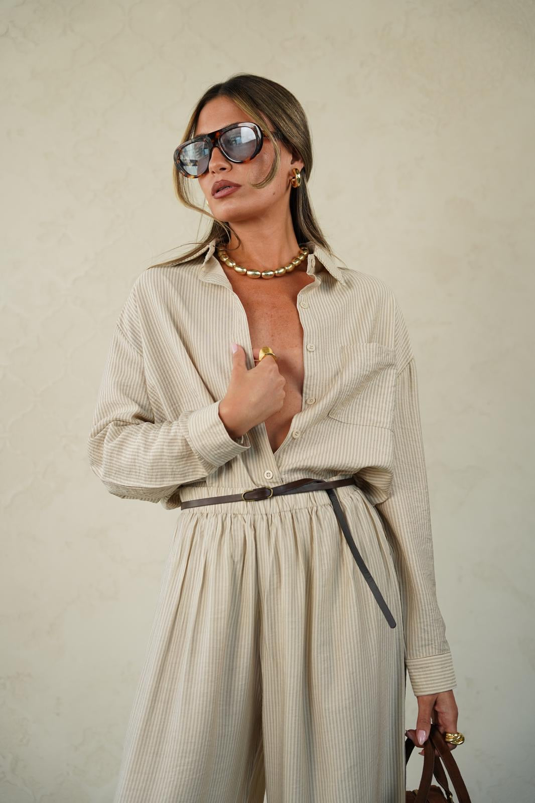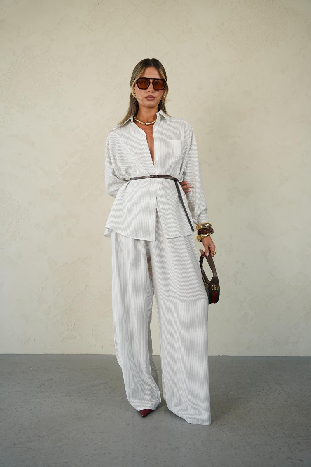 מכנס גומי וחולצת אוברסייז מכופתרת