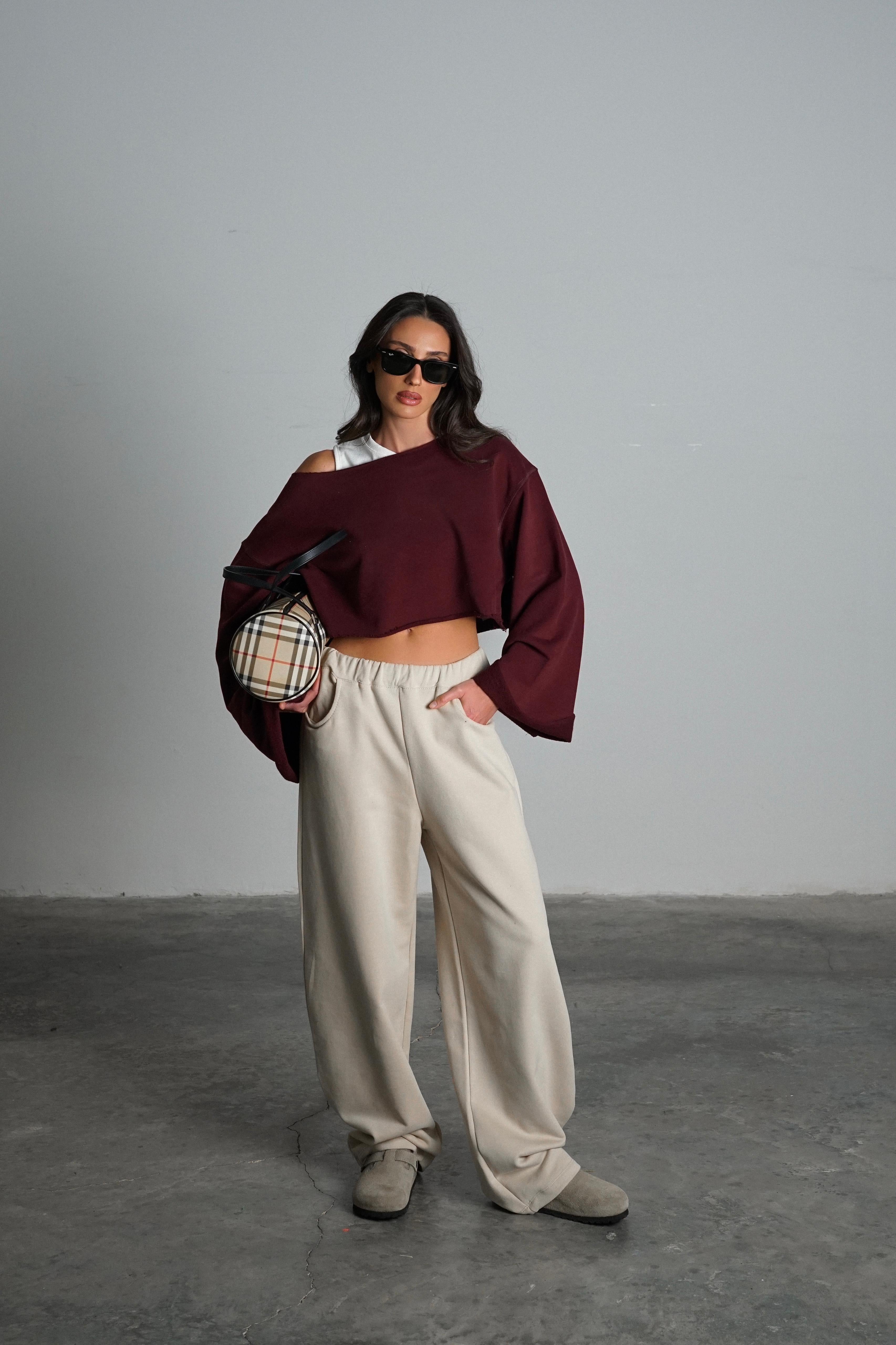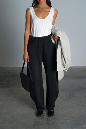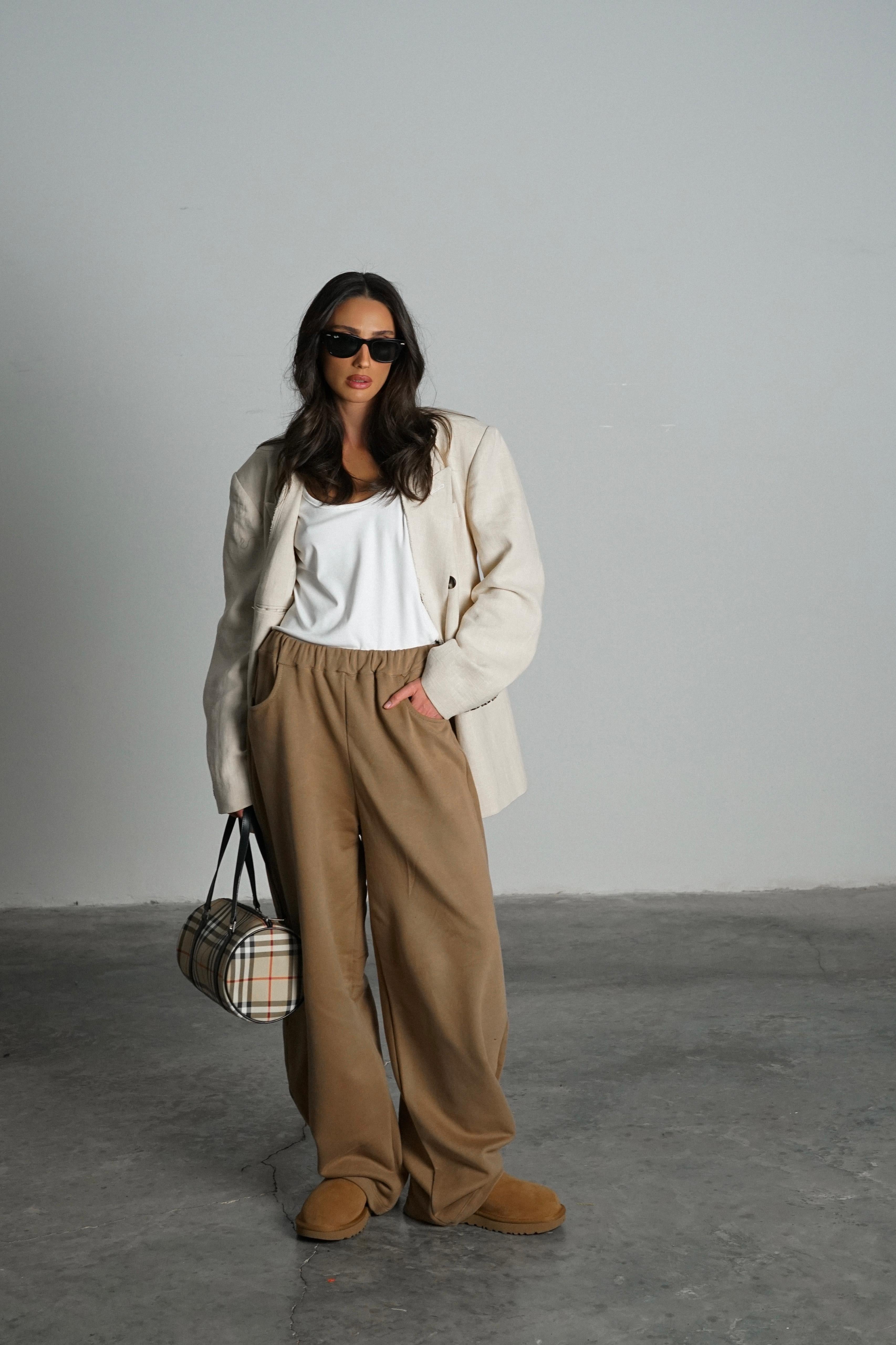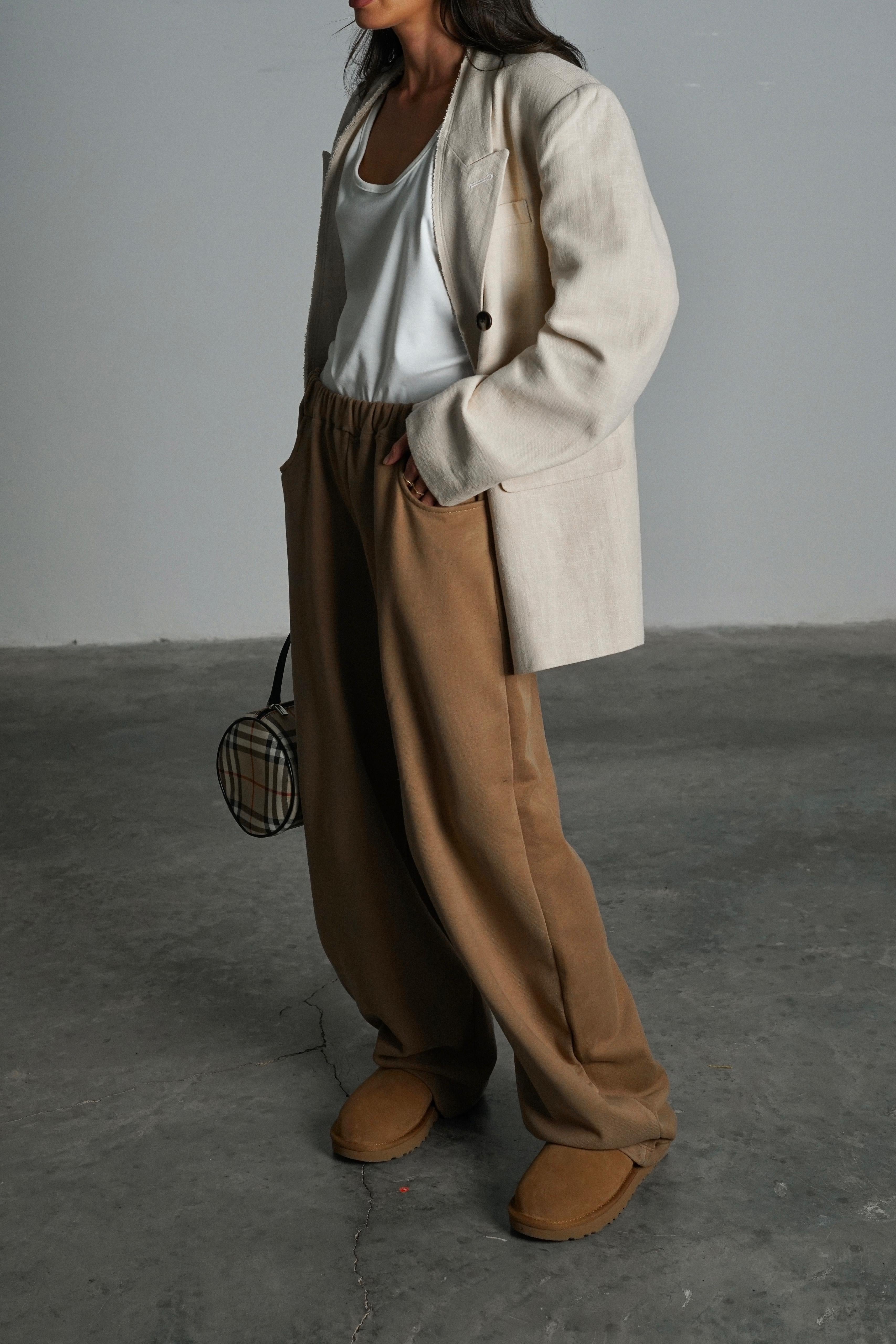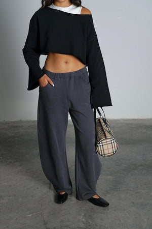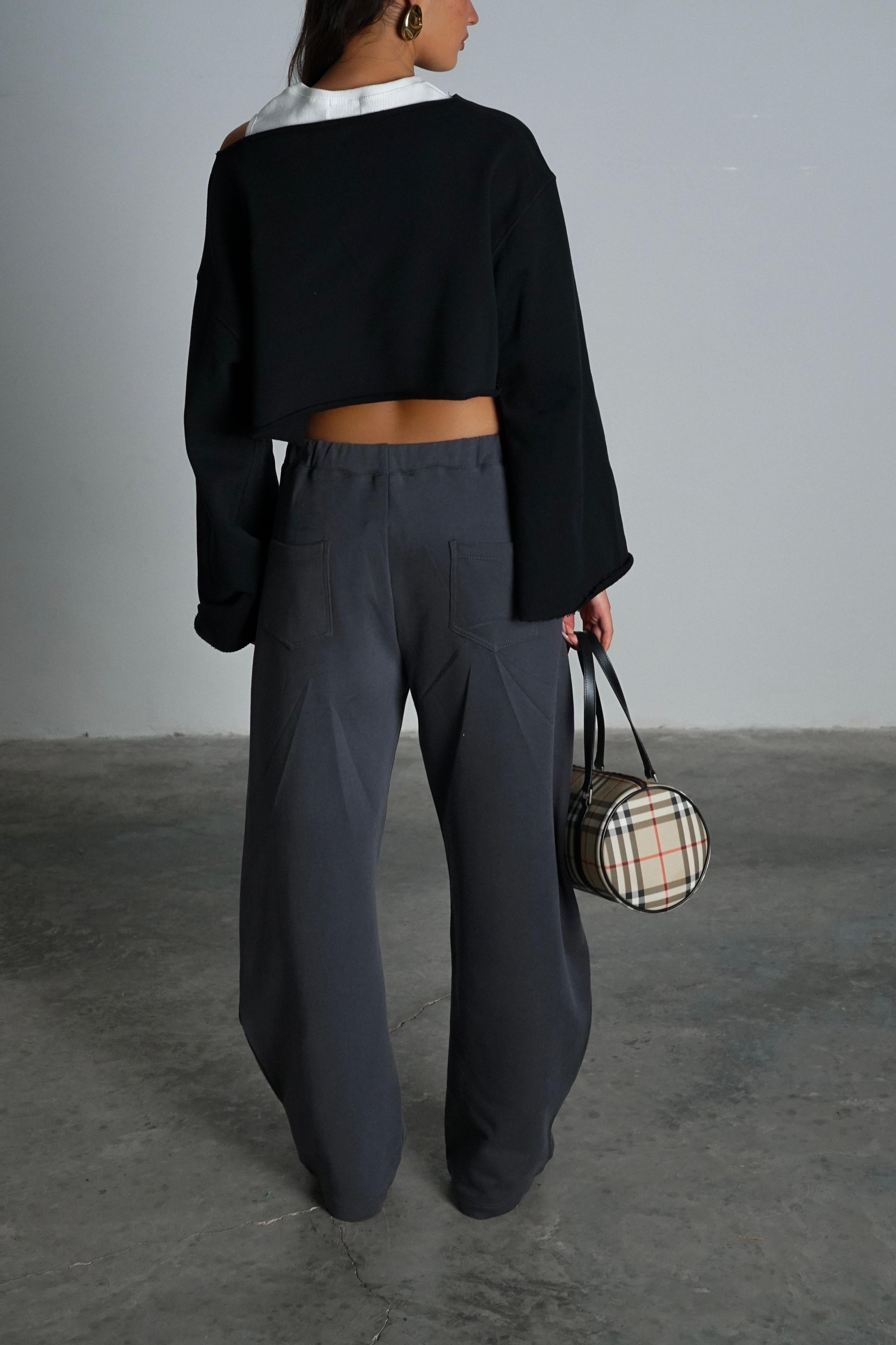מכנס רחב ונינוח מבד רך ונופל, בגוון אפור כהה שחור מוקה ואבן