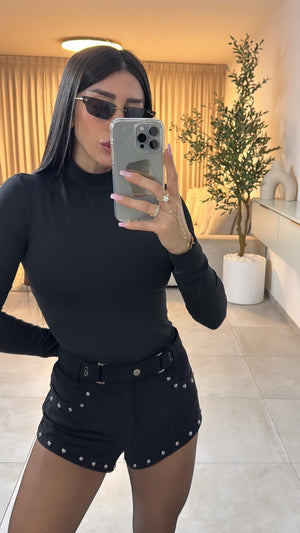 השורט עשוי מזמש רך במרקם חלק ונעים למגע, בגזרה גבוהה שמדגישה את קו המותן. הוא בעל קווים נקיים וסיומות מעודנות, היוצרים מראה אלגנטי עם נגיעה קז’ואלית. הגזרה מחבקת את הגוף בעדינות ומשתחררת קלות כלפי מטה, מה שמעניק לו תחושת נוחות וסטייל טבעי