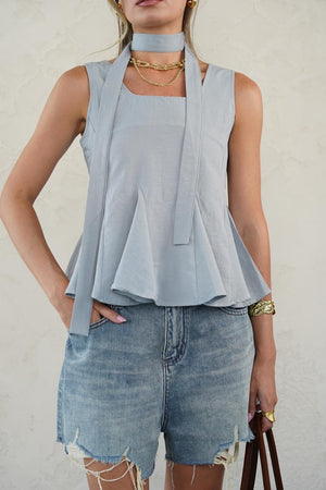 חולצת גופיה עם ריצרץ בגב , בגזרה מתרחבת, מגיעה עם צעיף קשירה