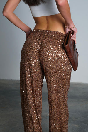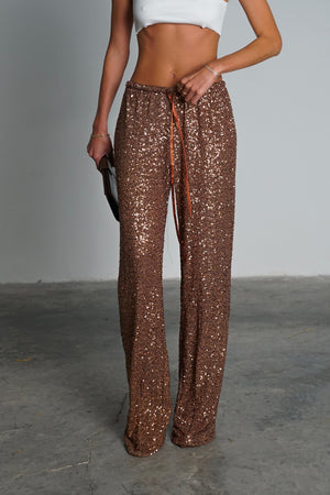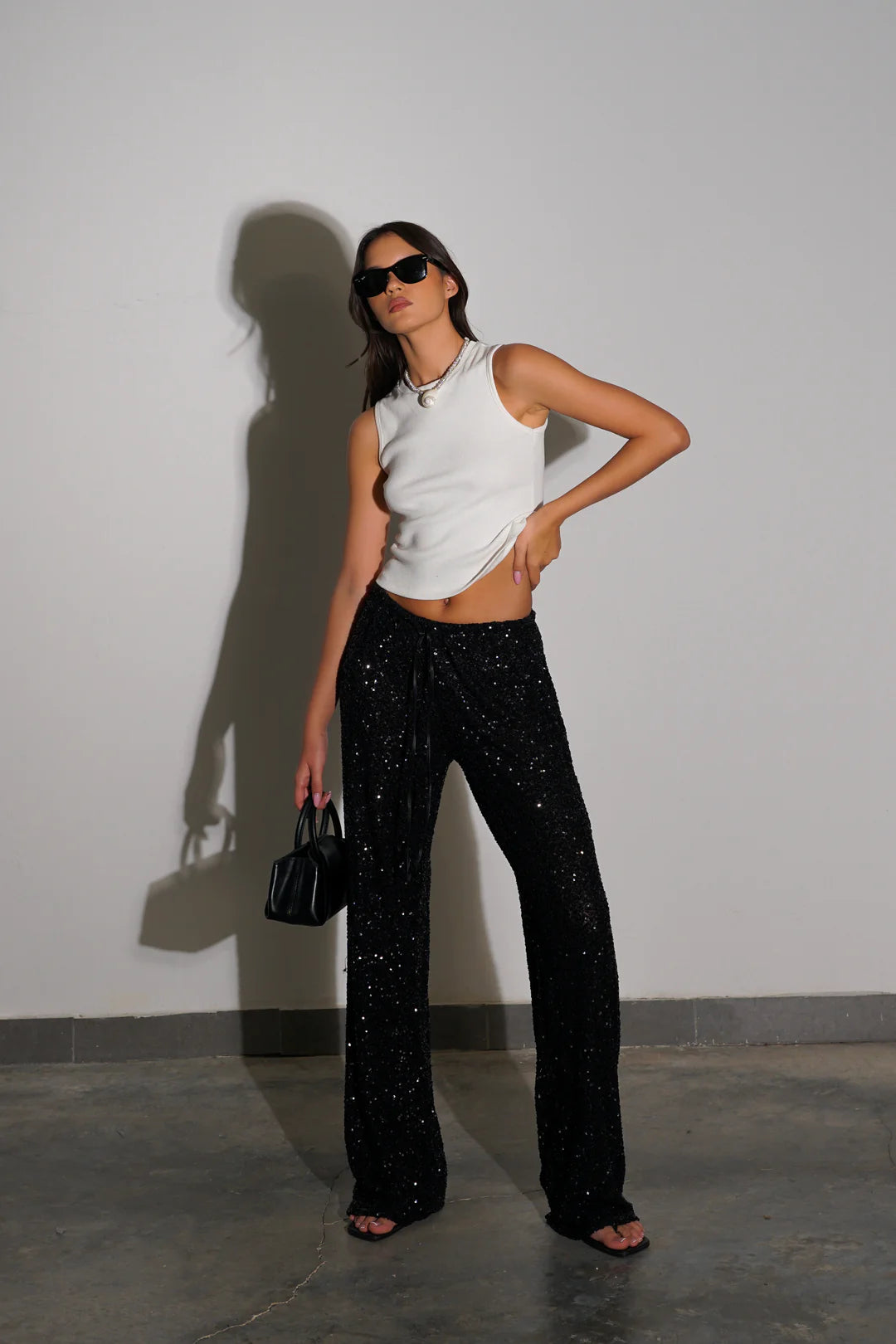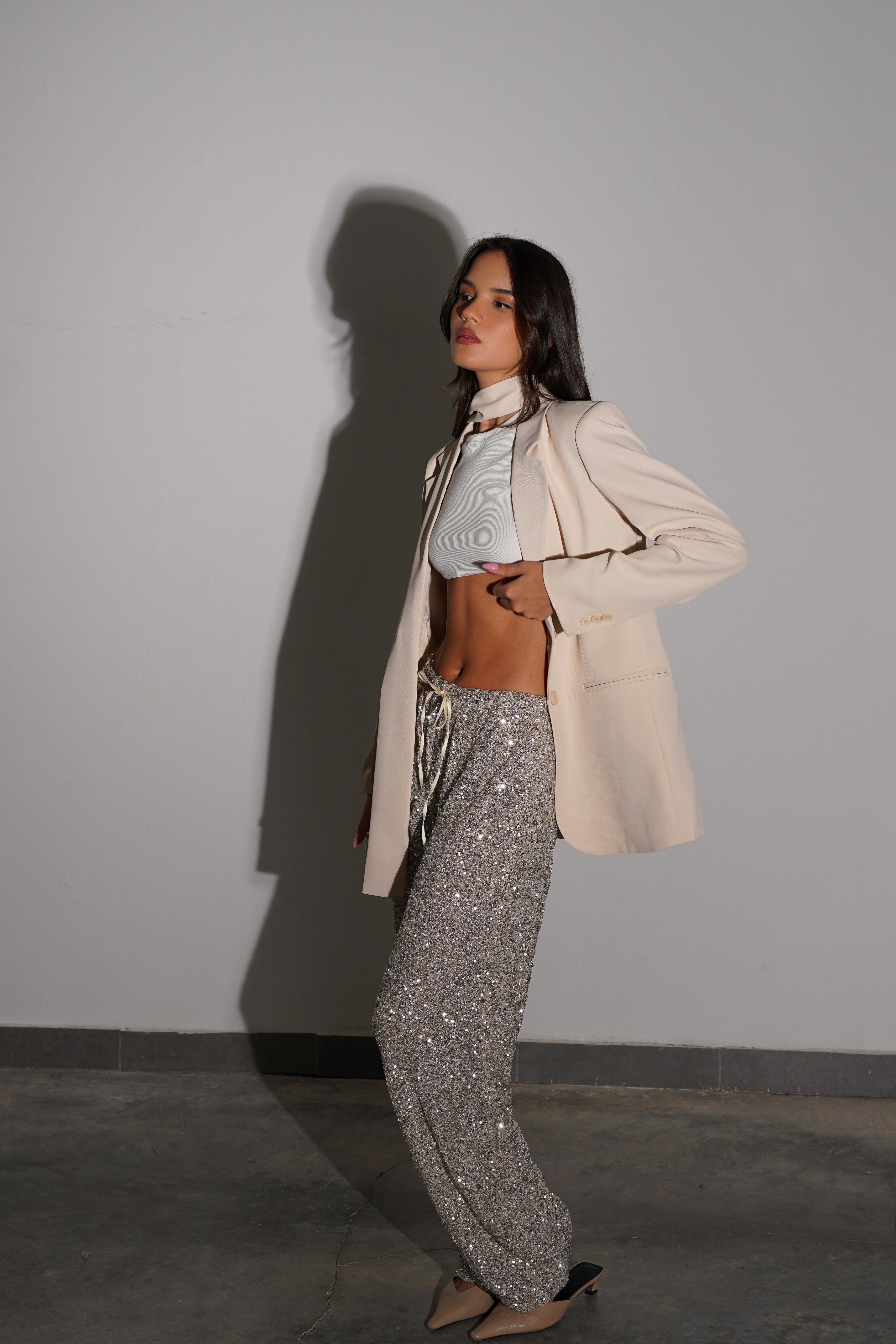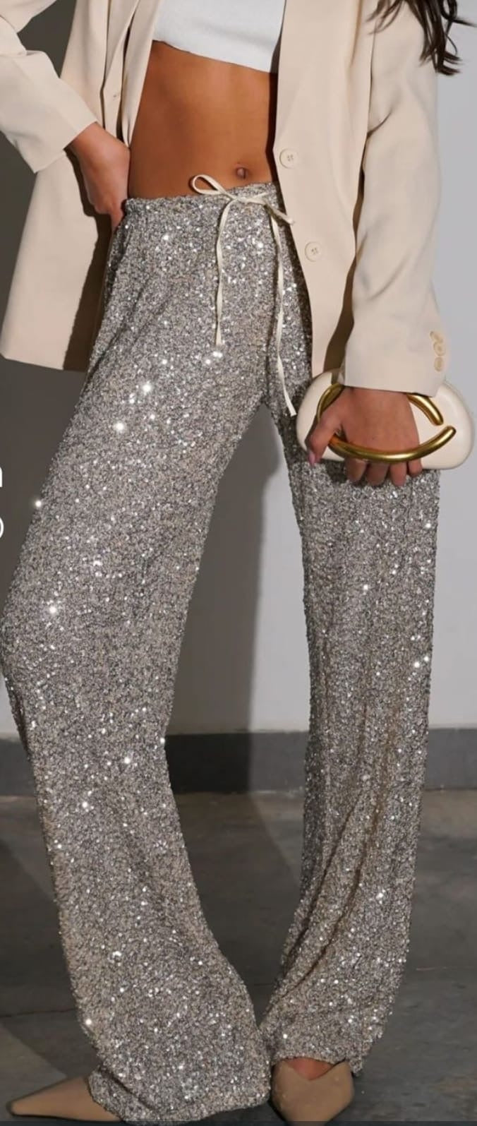 מכנסי פייטים בגזרה ישרה עם שרוכים לקשירה במותן