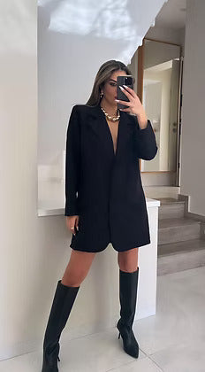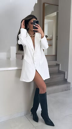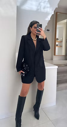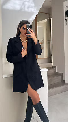 שמלה ג'קט מחוייט בגזרה ישרה עם כריות בכתפיים
