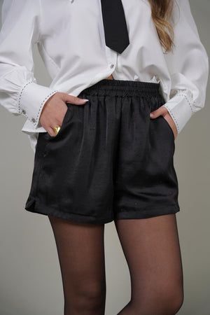 מכנס גומי מבד סטאן עם אבנים קטנות
