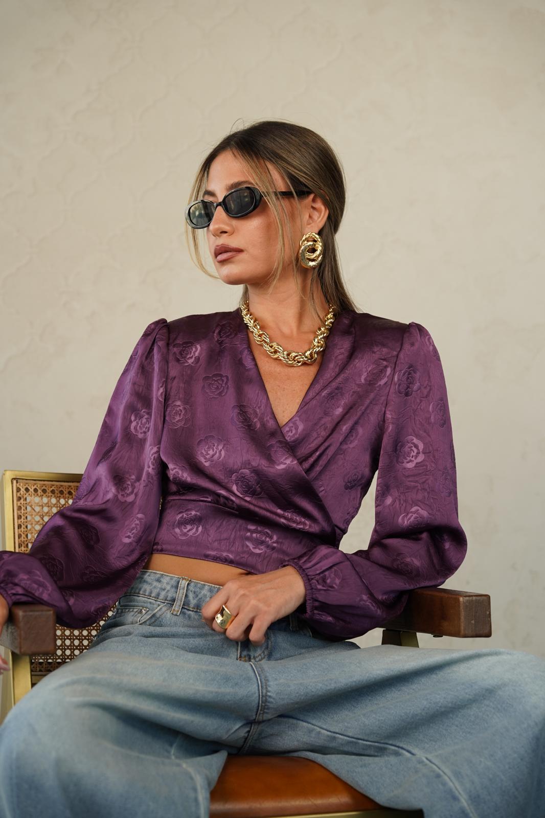 חולצת מעטפה קרופ מבד עשיר מאוד ואיכותי ממש , מפתח וי עמוק