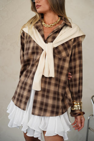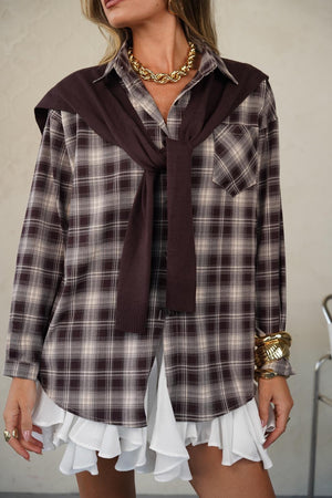 חולצה מכופתרת משובצת בגזרה אוברסייז