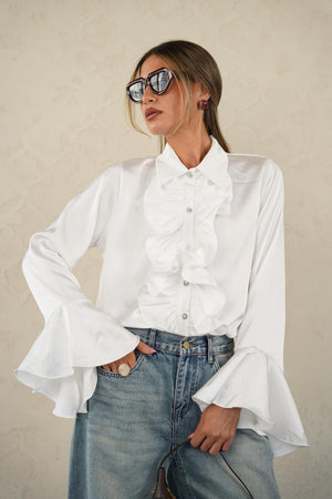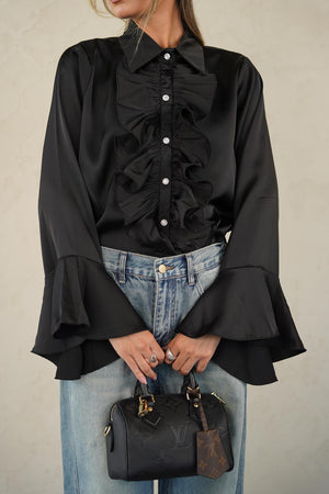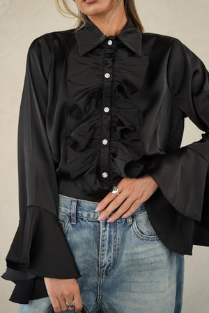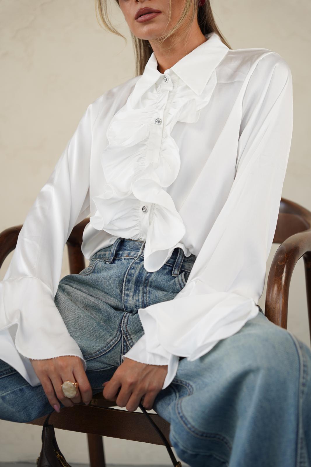חולצה אלגנטית מאוד עם שרוולים עשירים מכופתרת עם וולנים , כפתורים עם אבנים