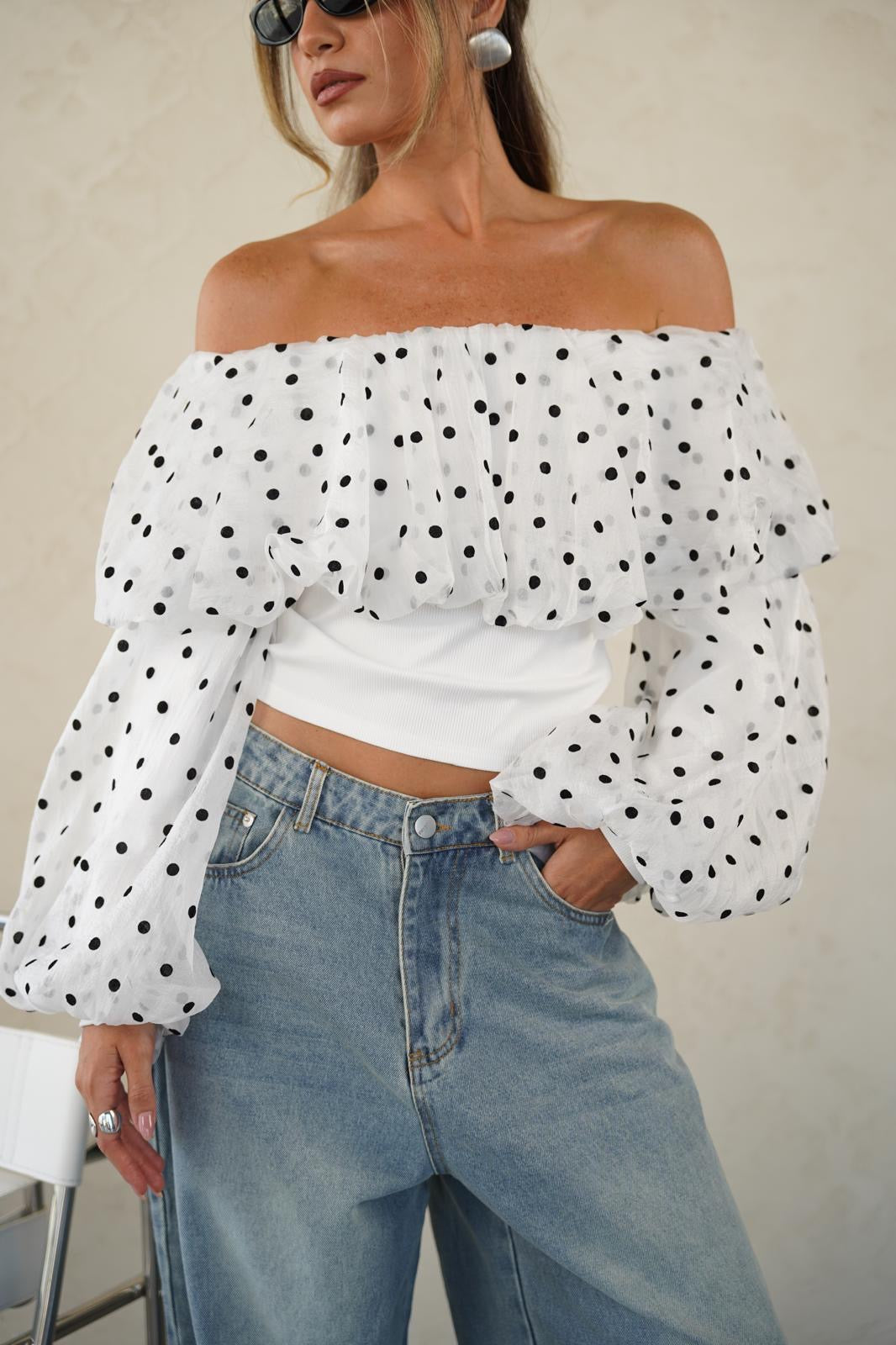 החולצה קיימת בלבן, שחור, שחור נקודות , ולבן נקודות