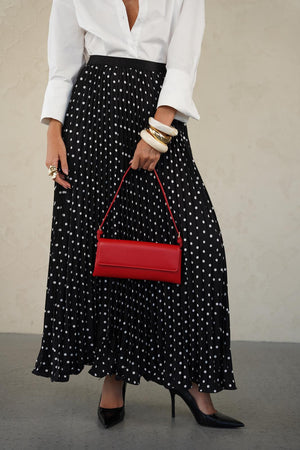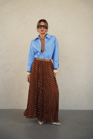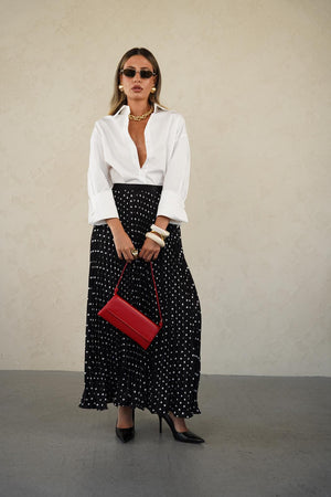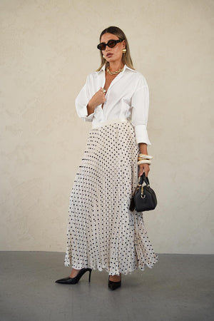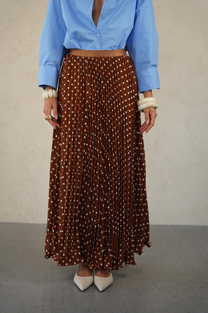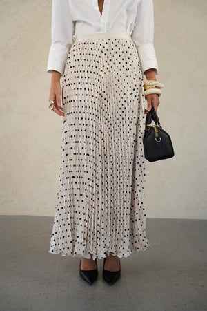 חצאית פליסה נקודות עם גומי באורך מקסי