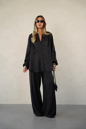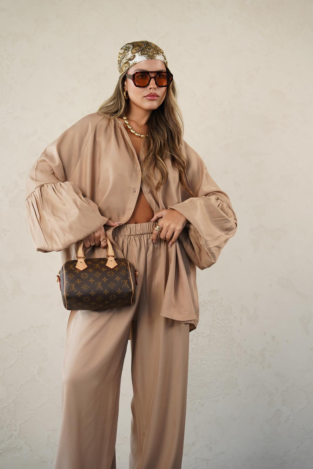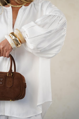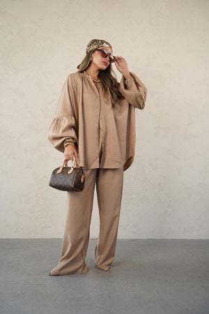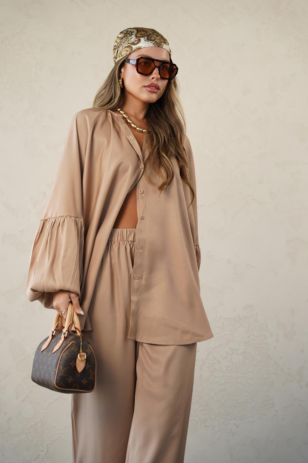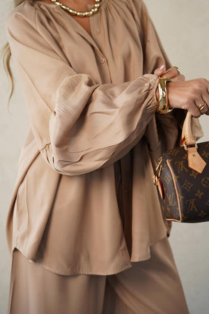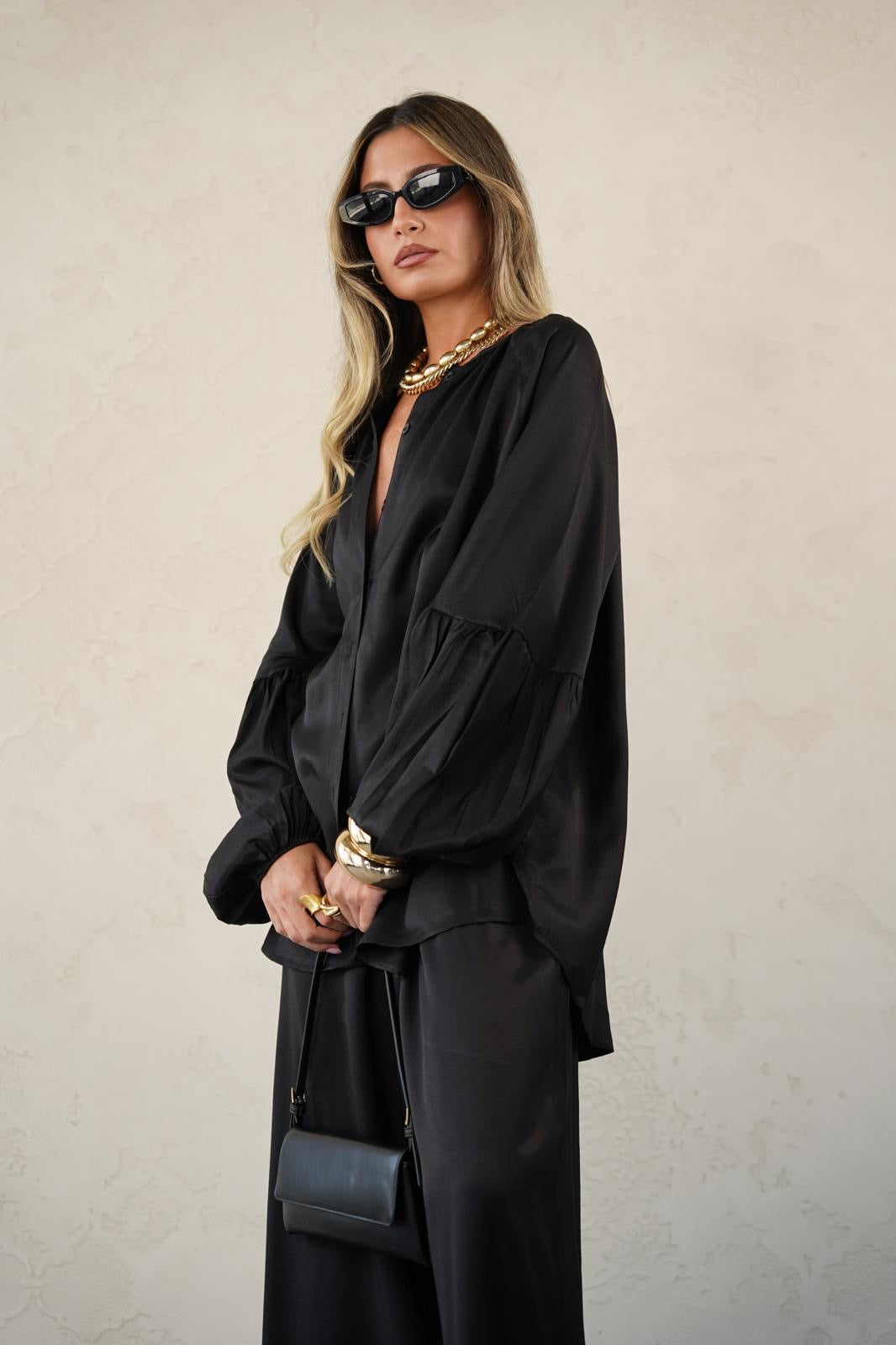 חולצה מכופתרת עם שרוול פעמון וגומי