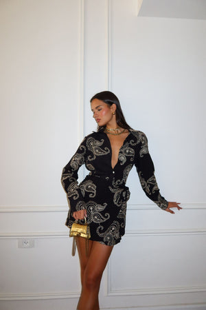 חולצה מכופתרת | חצאית מיני עם סגירת קשירה בצד המותן