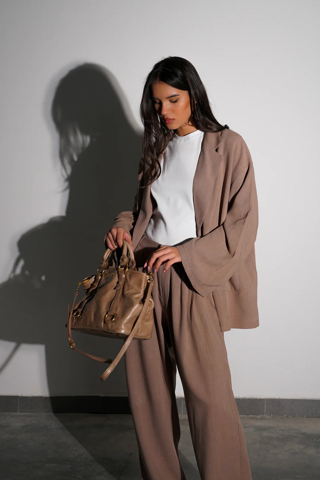 עליונית בגזרת אוברסייז | מכנסיים רחבים ונשפכים בגזרה גבוהה