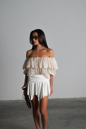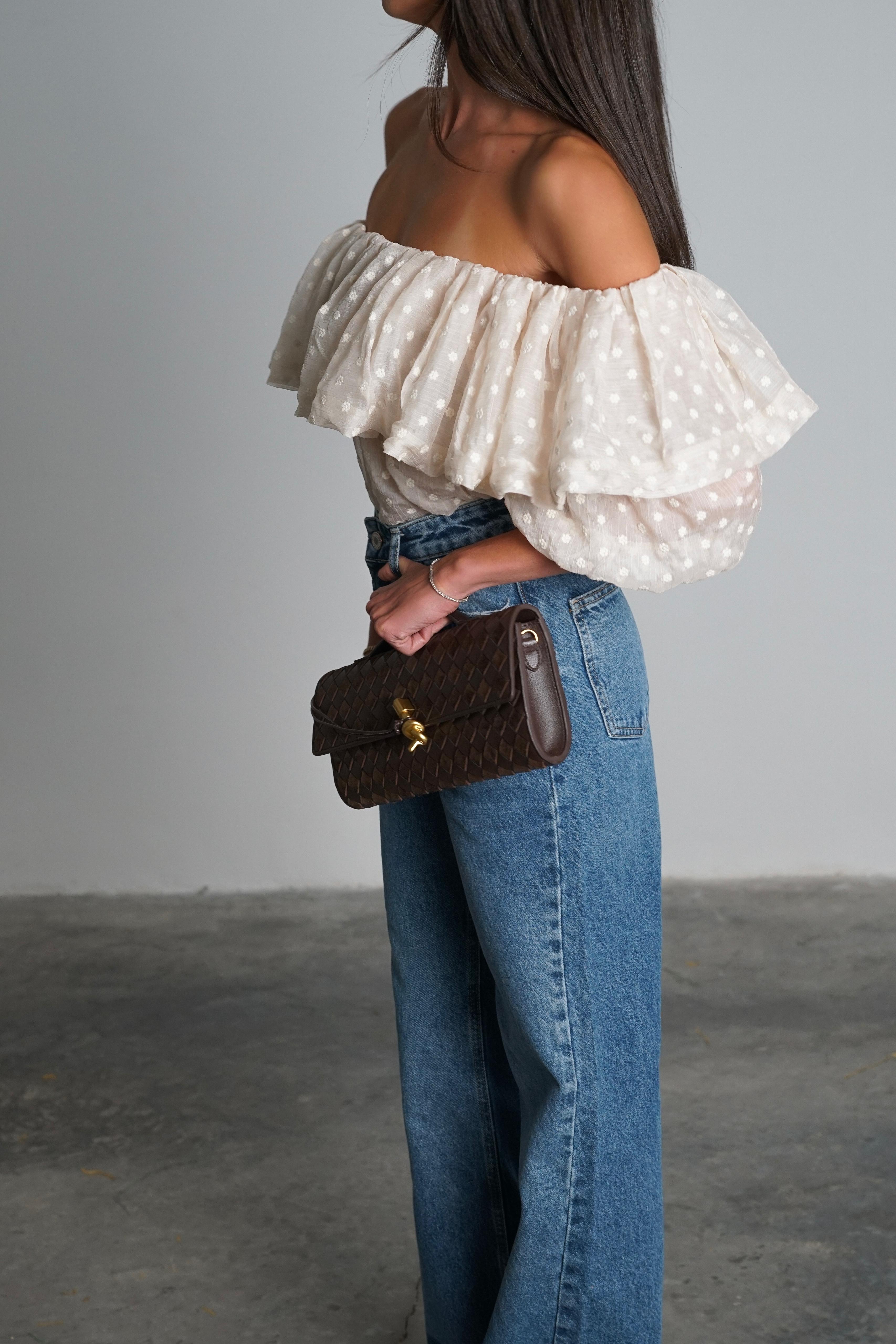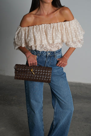 טופ בגזרת שרוולי ריטה הדפס נקודות גוון שמנת