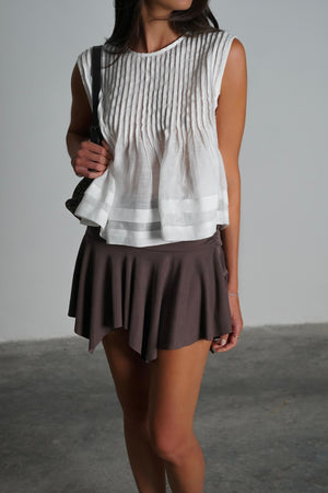 טופ צוואר מפתח צוואר עגול | בעל טקסטורת פסים אנכיים דקים בחלק העליון