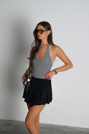 טופ גזרת קולר הדפס פסים | בד נמתח