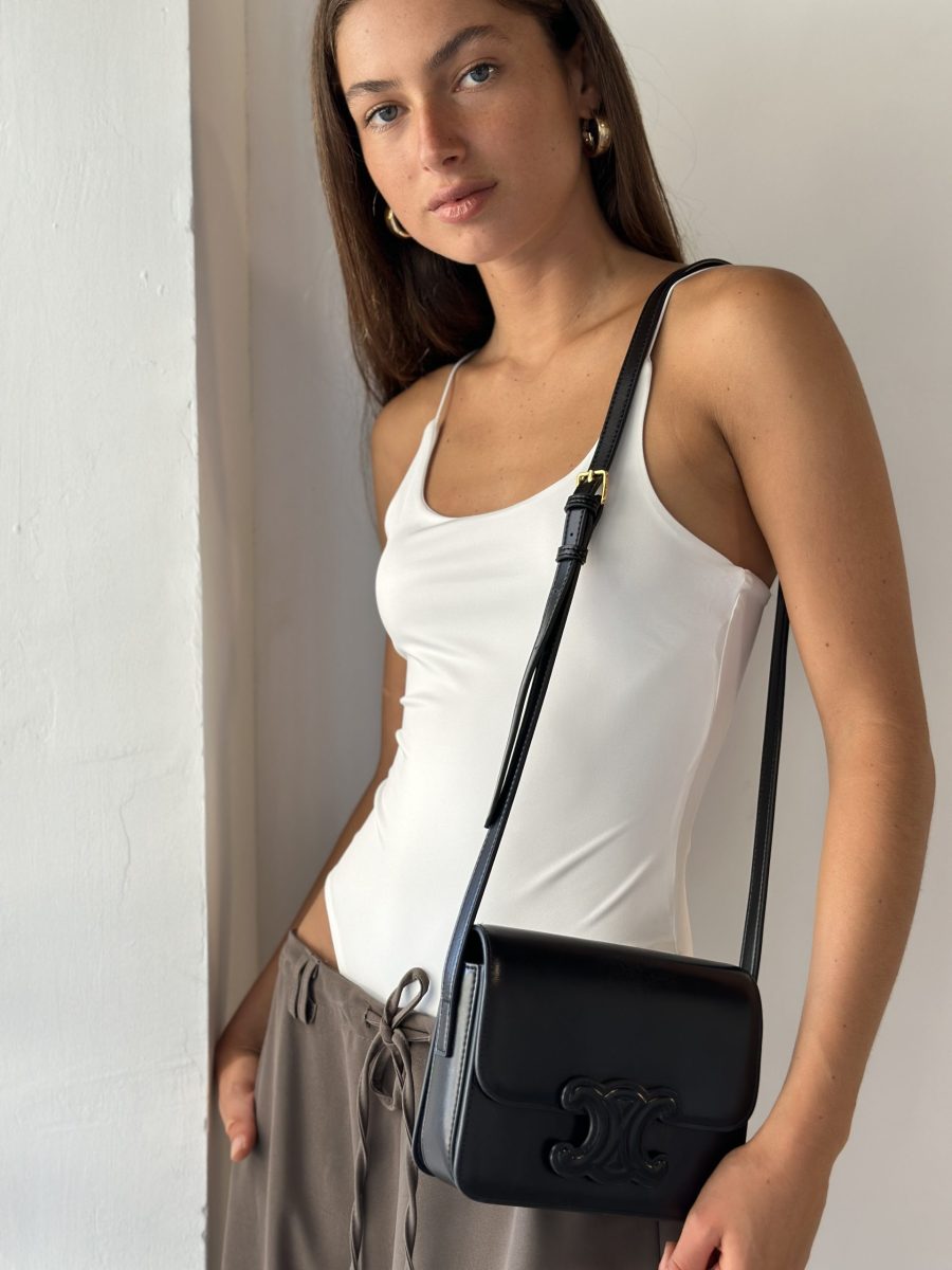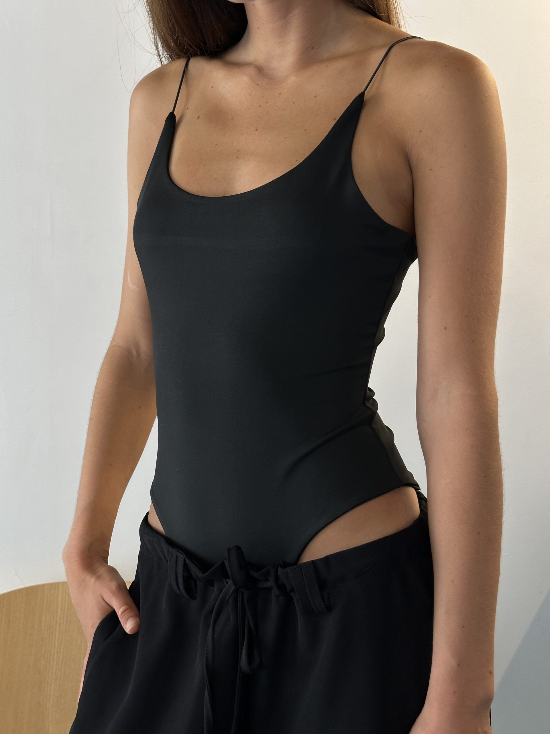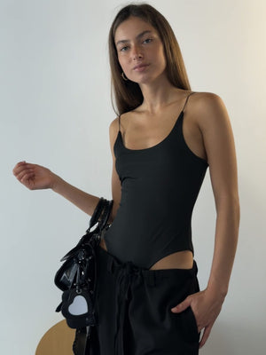 בגד גוף עם מפתח עגול וכתפיות דקות.