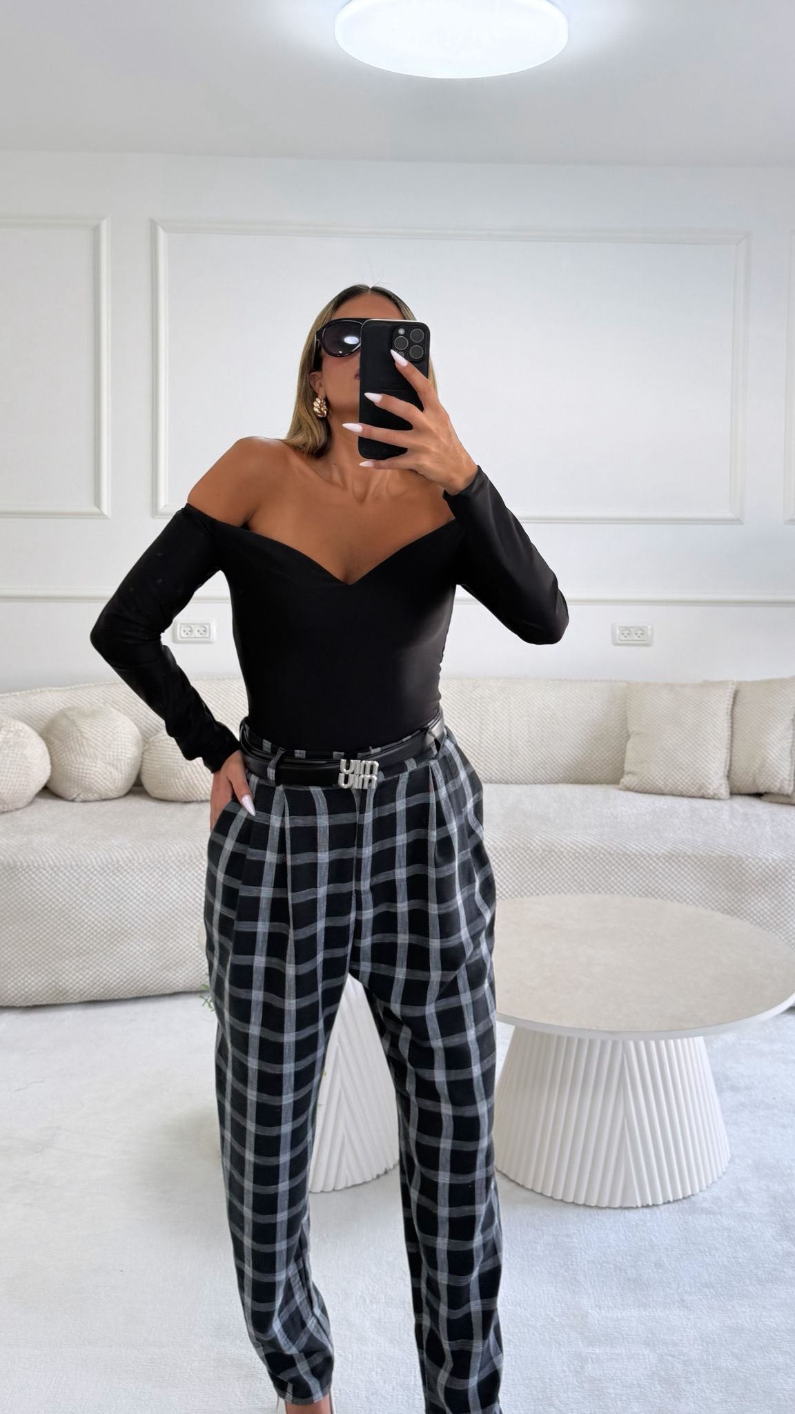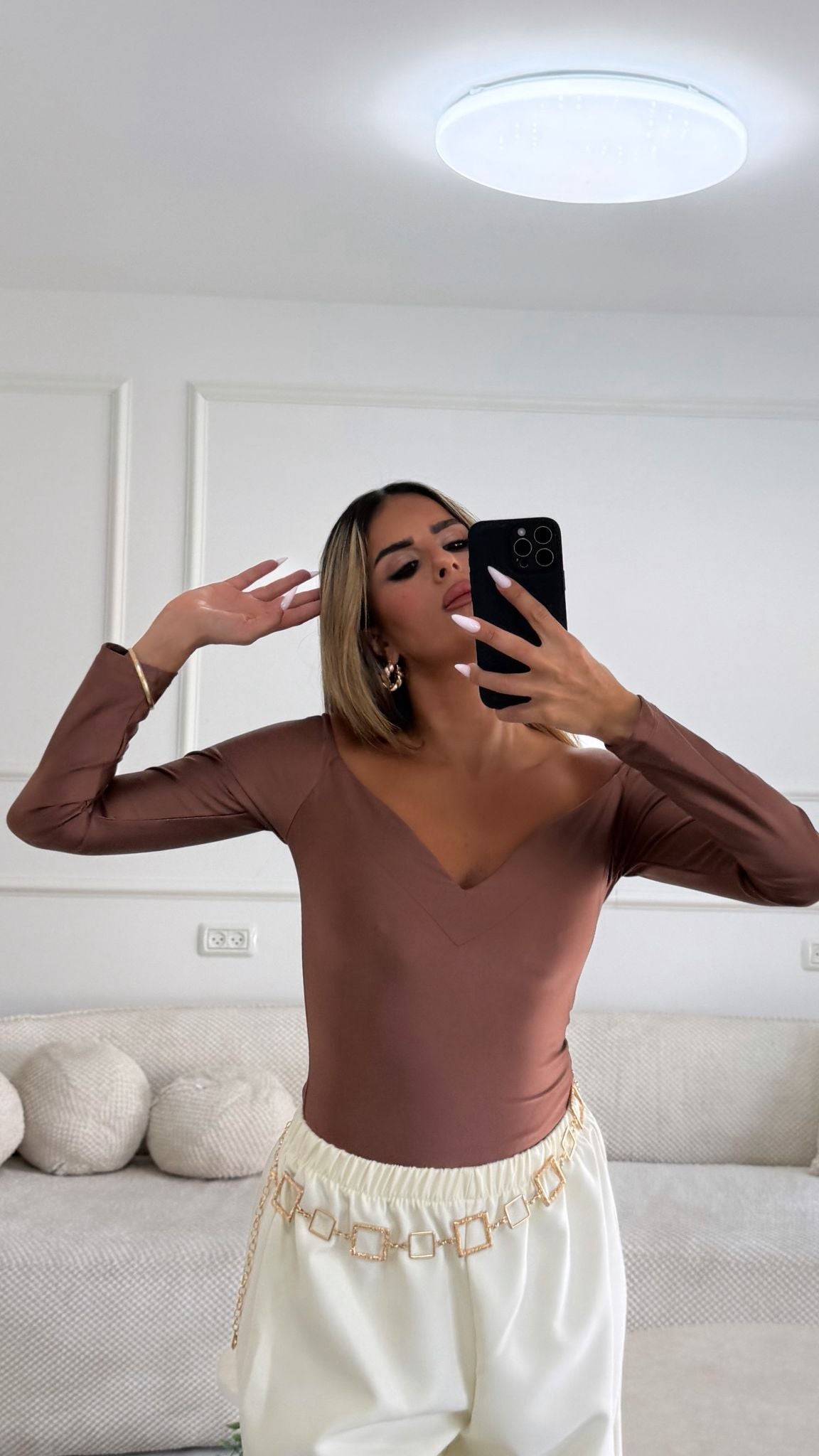 בגד גוף ריטה מחמיא בחזה, חושף כתפיים עם שרוולים ארוכים