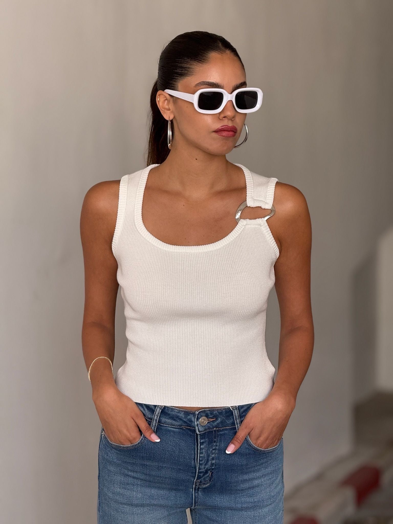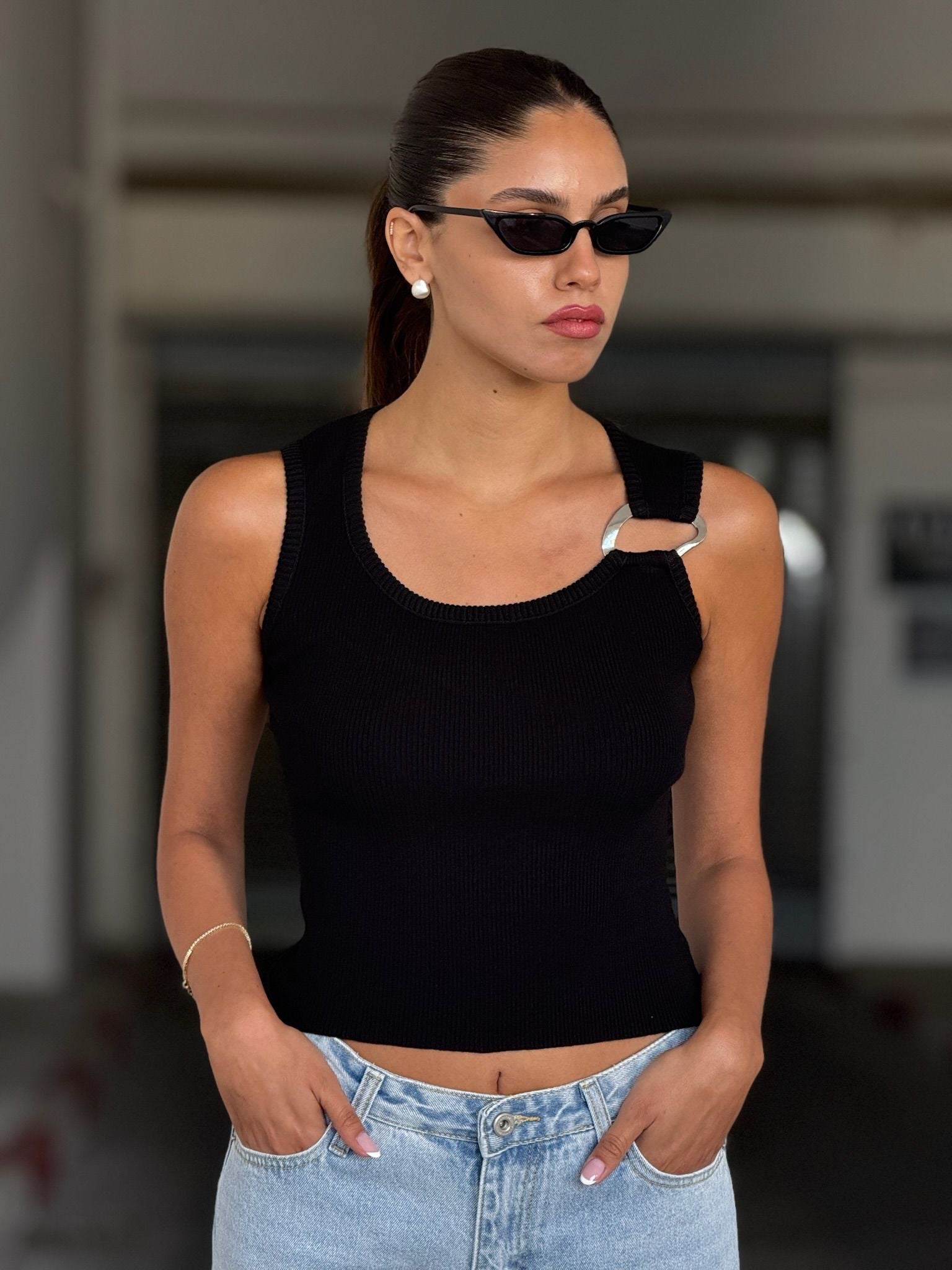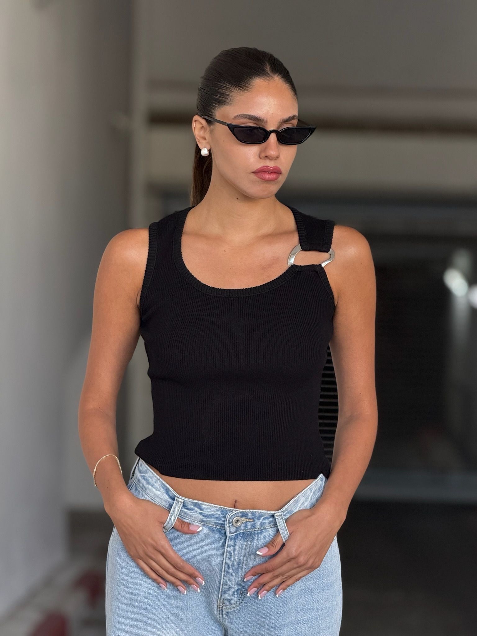 גופייה עם אבזם בכתפיה