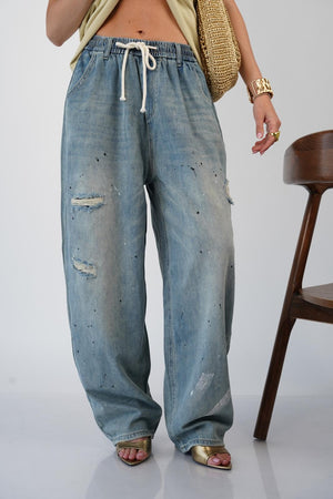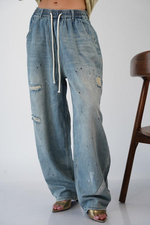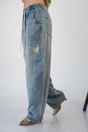 ג׳ינס ספורטיבי דק עם גומי במותן