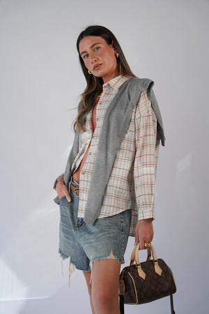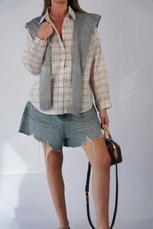 חולצת לוסי חולצה דקה קייצית מכופתרת עם צעיף סריג לא מחובר וואן סייז קיים ב3 צבעים