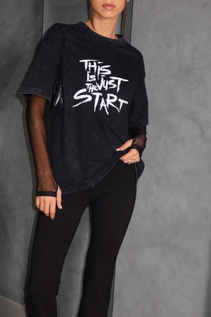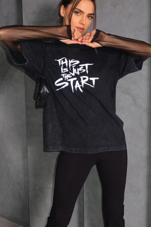 חולצת טי שירט חצי שרוול, משולבת שרוול שיפון ארוך עם כפפה להכנסת האצבע