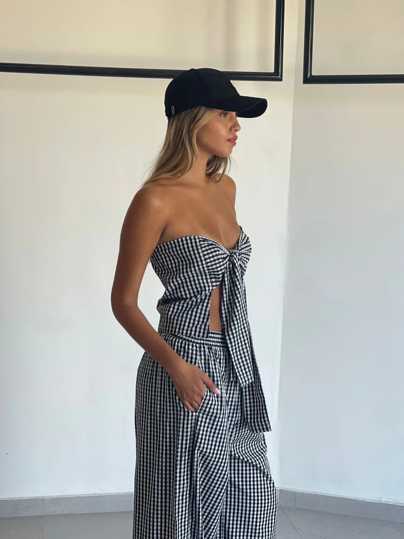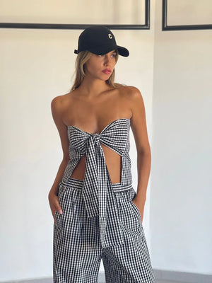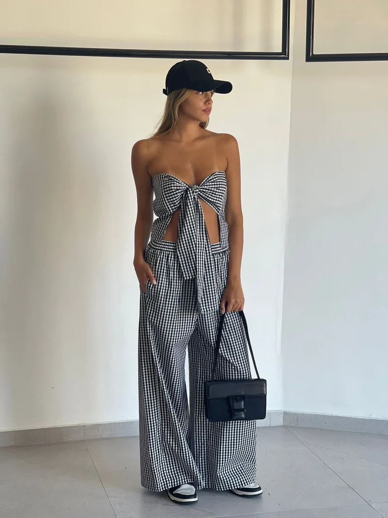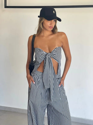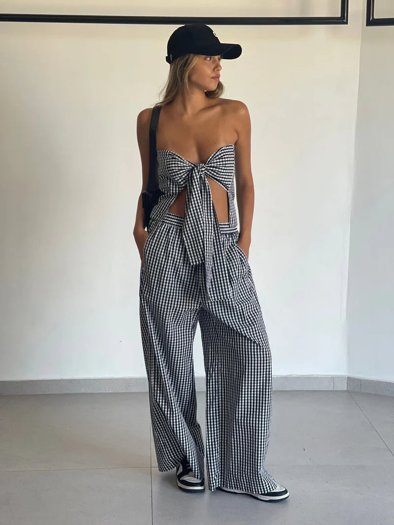 למכנס תוספת בד הניתנת לקשירה בדרכים שונות