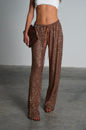 מכנסי פייטים בגזרה ישרה עם שרוכים לקשירה במותן